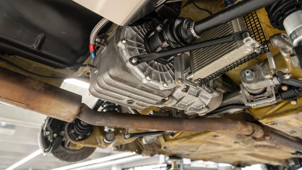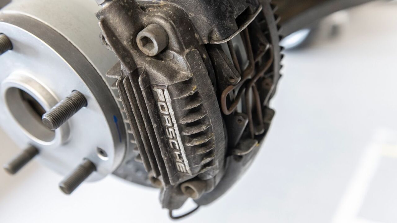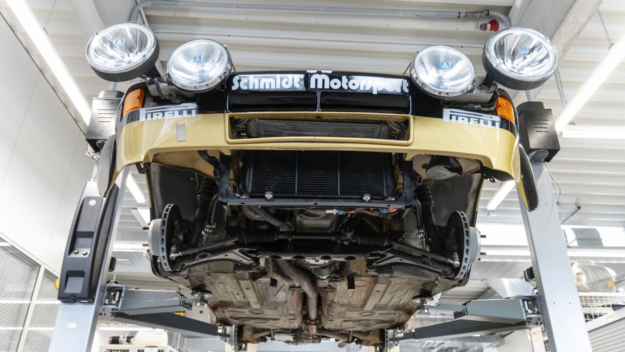 For instance, the sun-faded red seat belt harnesses under the glass dome are the original components from Röhrl and Geistdörfer's Porsche rallying days. However, Porsche took the liberty to rebuild or overhaul all the original serviceable parts (like the engine, gearbox, and brakes), but the Pirelli tires and racing clutch are period-correct.