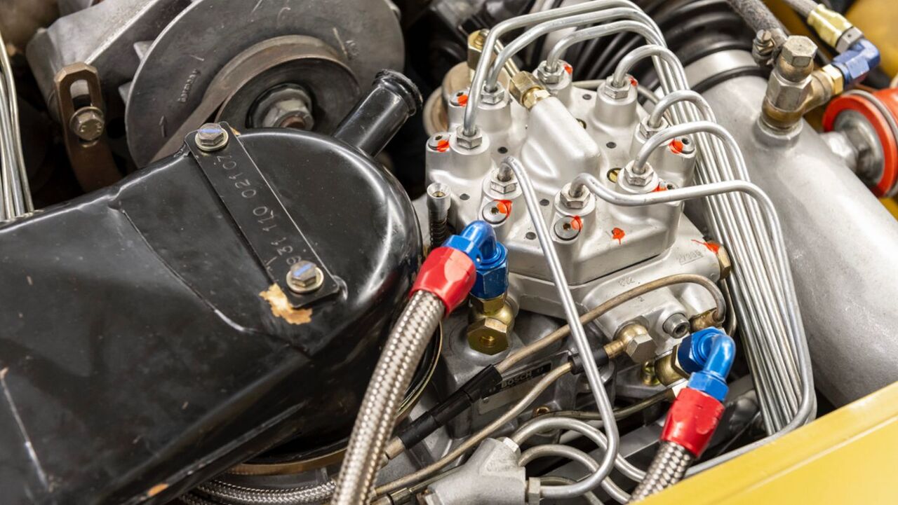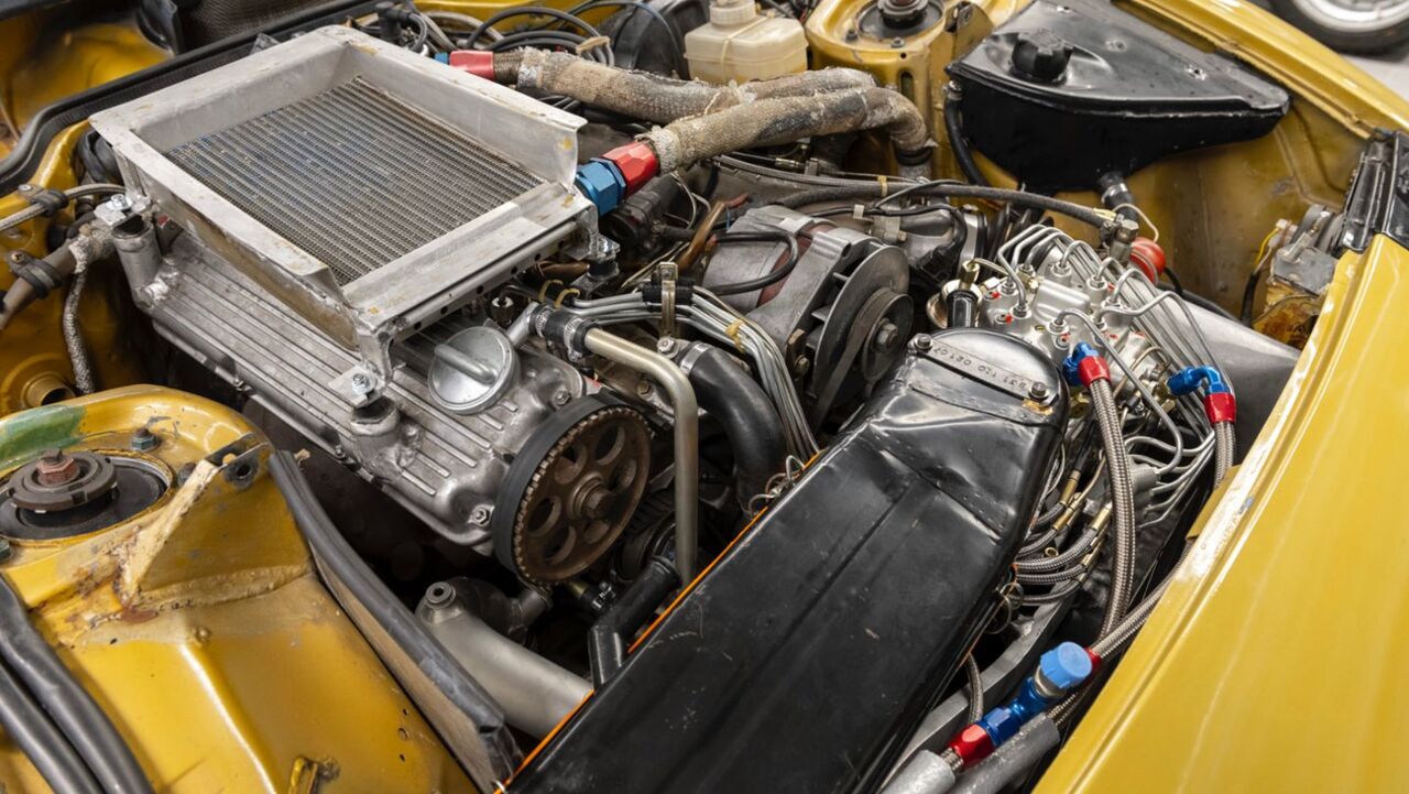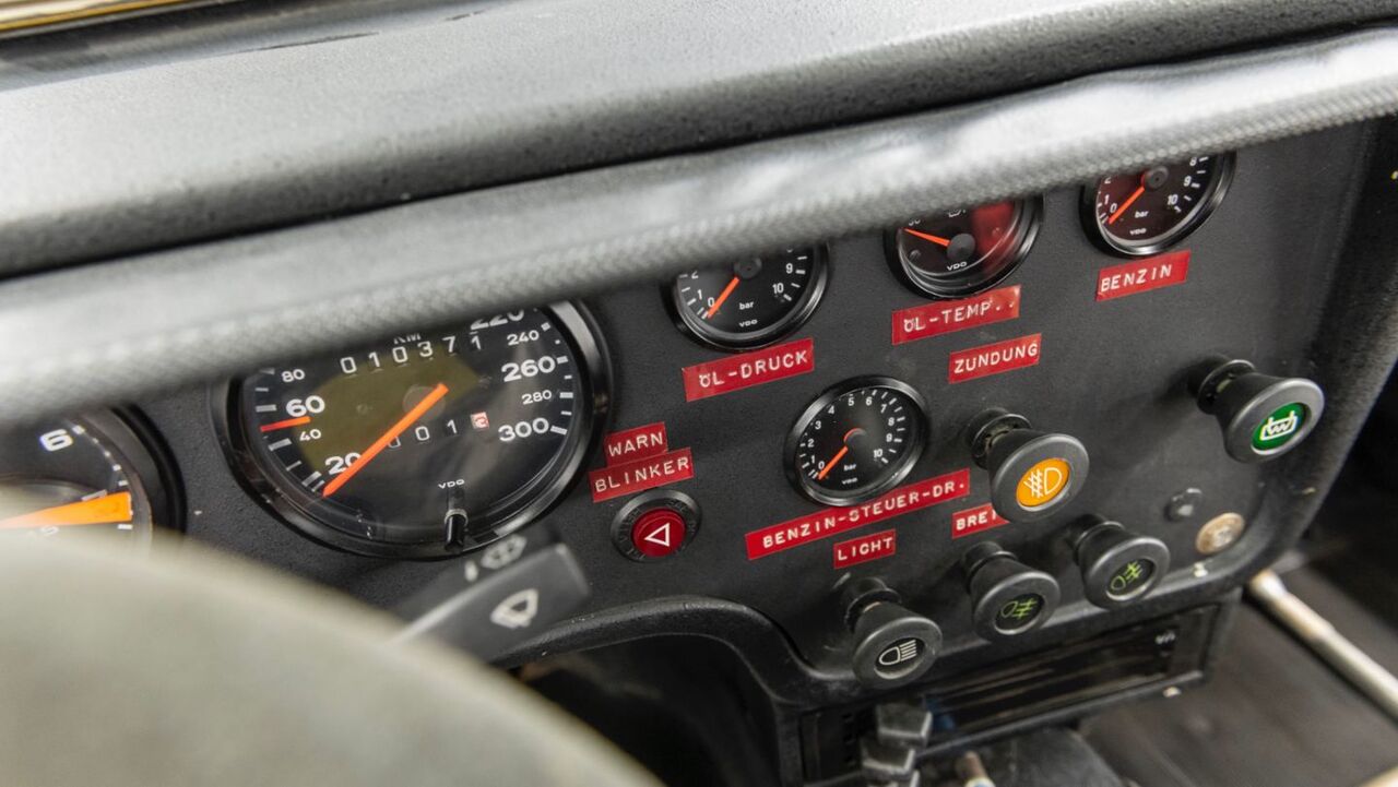 Walter Röhrl's Porsche 924 Carrera GTS Rally is the fifth of nine prototypes built, and the turbocharged 2.0-liter four-cylinder engine has no serial number. Despite this, the engine completed a rally season without succumbing to damage, and it still wears its 10,371 original kilometers proudly on the odometer.