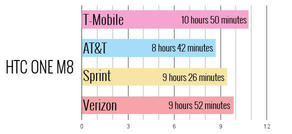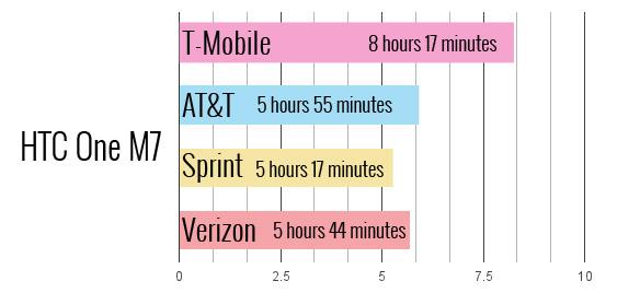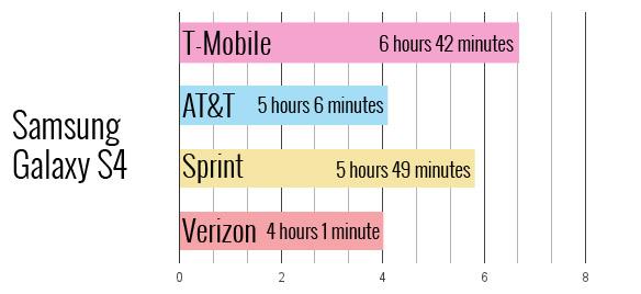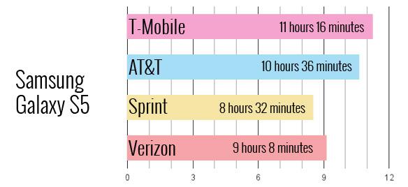 So, how much of a gain are you really getting in choosing T-Mobile? Over the course of the past year, Laptop found that T-Mobile brought an average of 8 hours & 11 minutes of battery life. Sprint was second with 7 hours & 34 minutes. AT&T checked in with 7 hours & 26 minutes, while Verizon gets you 7 hours & 12 minutes.