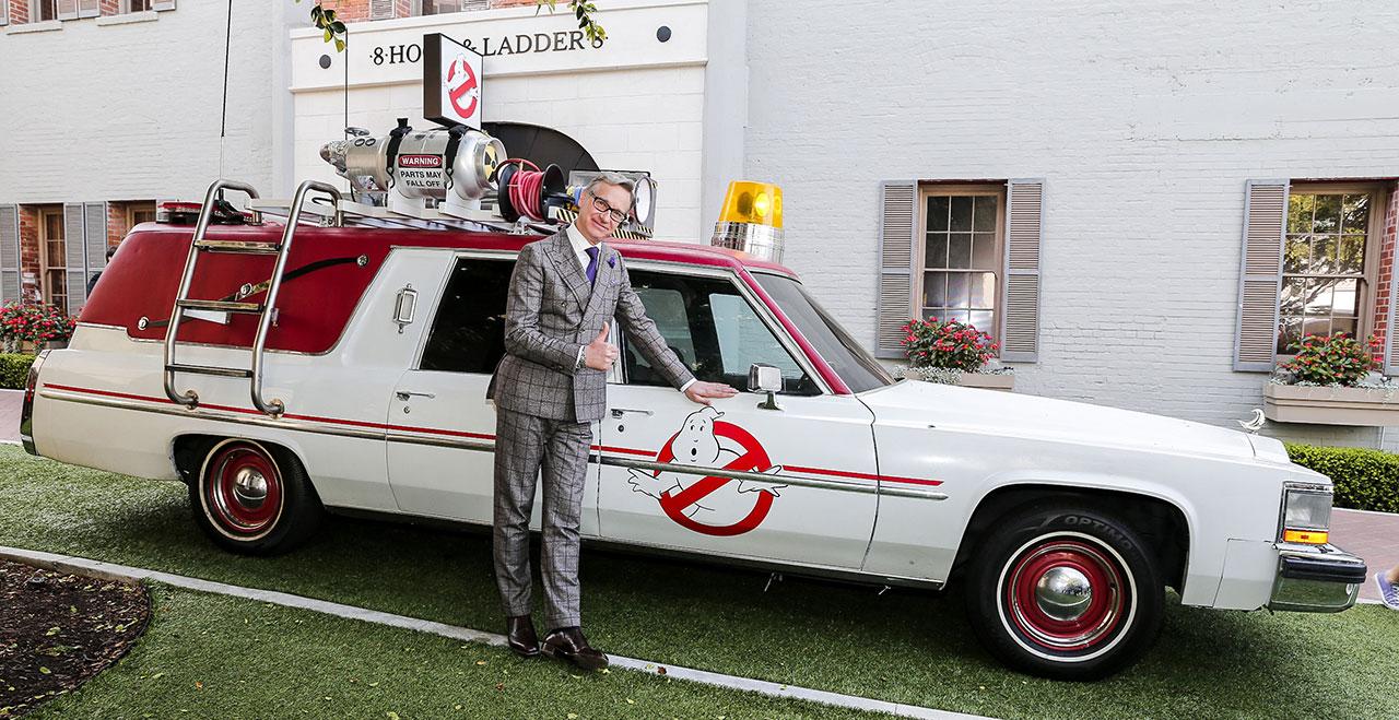 Jones is an expert on New York City and goes all-in on their new vehicle, the Ecto-1, which at first pays tribute to the original Ecto-1 which was, indeed, black. Once it was clear the first, original film was going to take place largely at night, the vehicle was painted white.