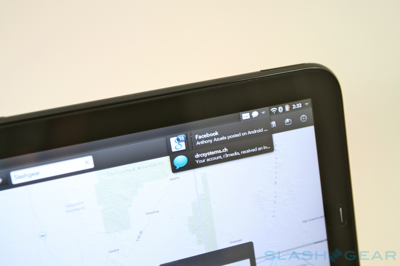 Then there's on-device alerts. Make no mistake, notifications are difficult things to get right: Apple is only really addressing them properly now, years into iOS, after all. webOS, though, understood it from the very start. Notifications slide into view across the top of the screen (in the top status bar on the HP TouchPad, for instance) to preview their content, and then collapse to icons. Tapping each icon gives a glimpse of whatever email, SMS or calendar alert is being flagged up, and you can then tap again to go straight to the relevant app, or swipe the notification off the screen and attend to it later. It's easy, intuitive and works exceptionally well.