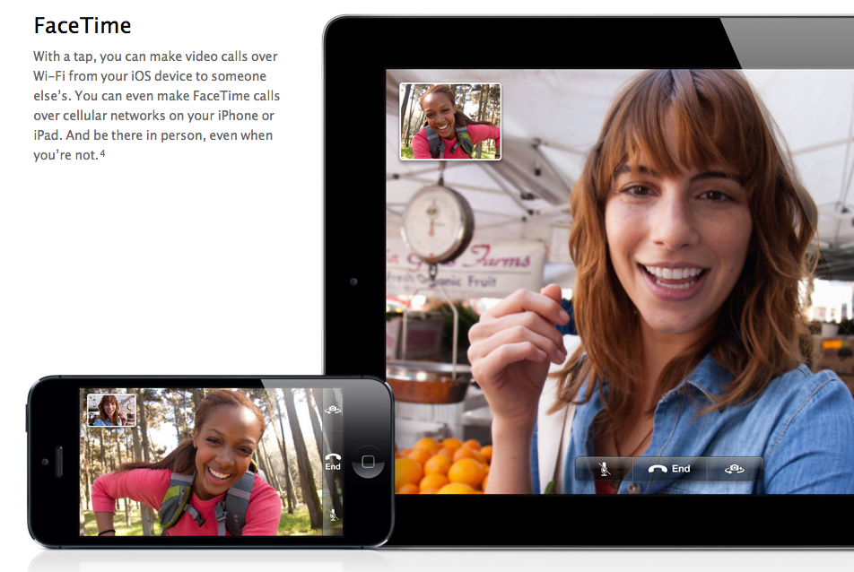 - FaceTime over cellular support for iPhone 5, iPhone 4S and iPad Wi-Fi + Cellular (3rd generation)