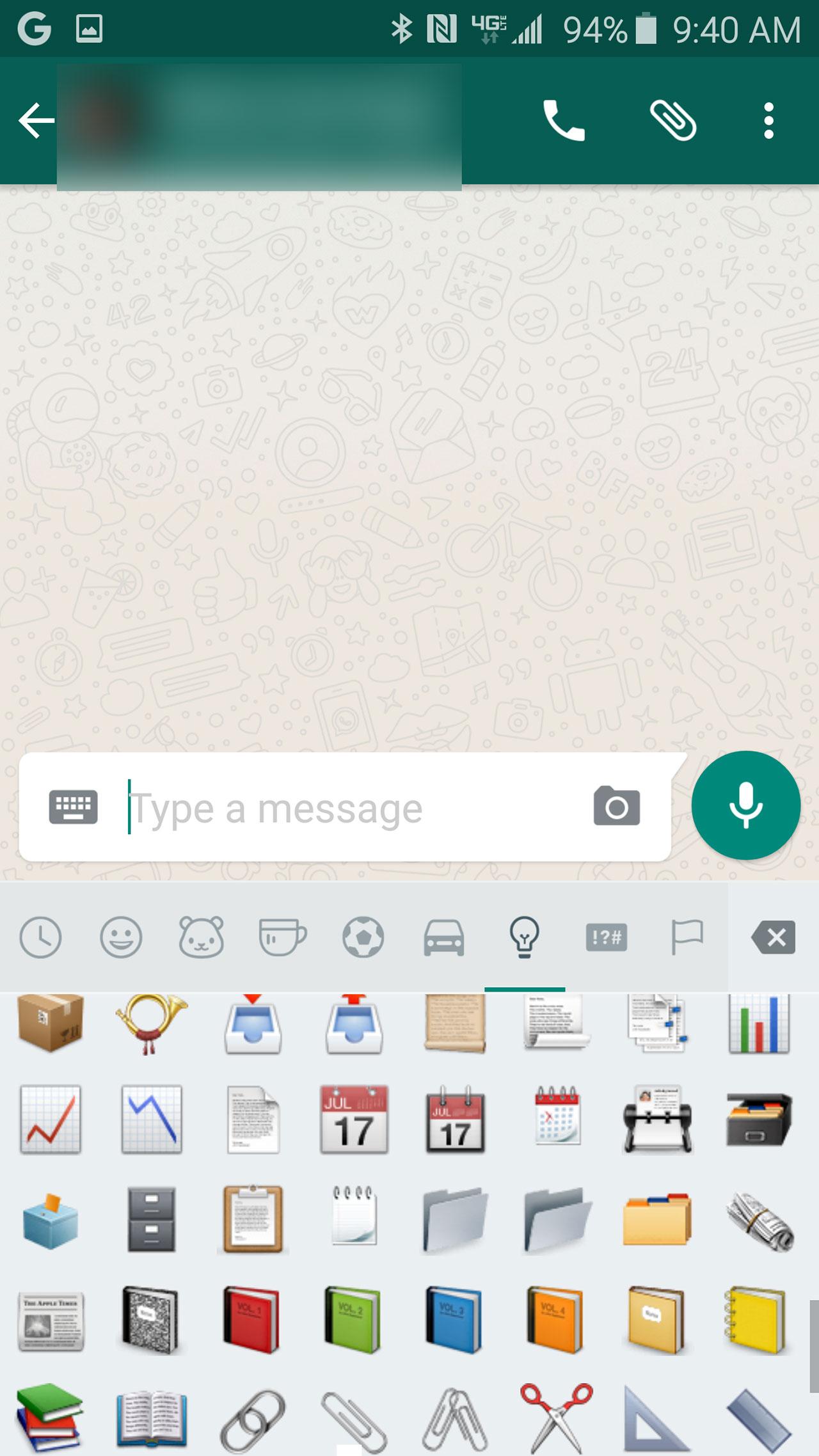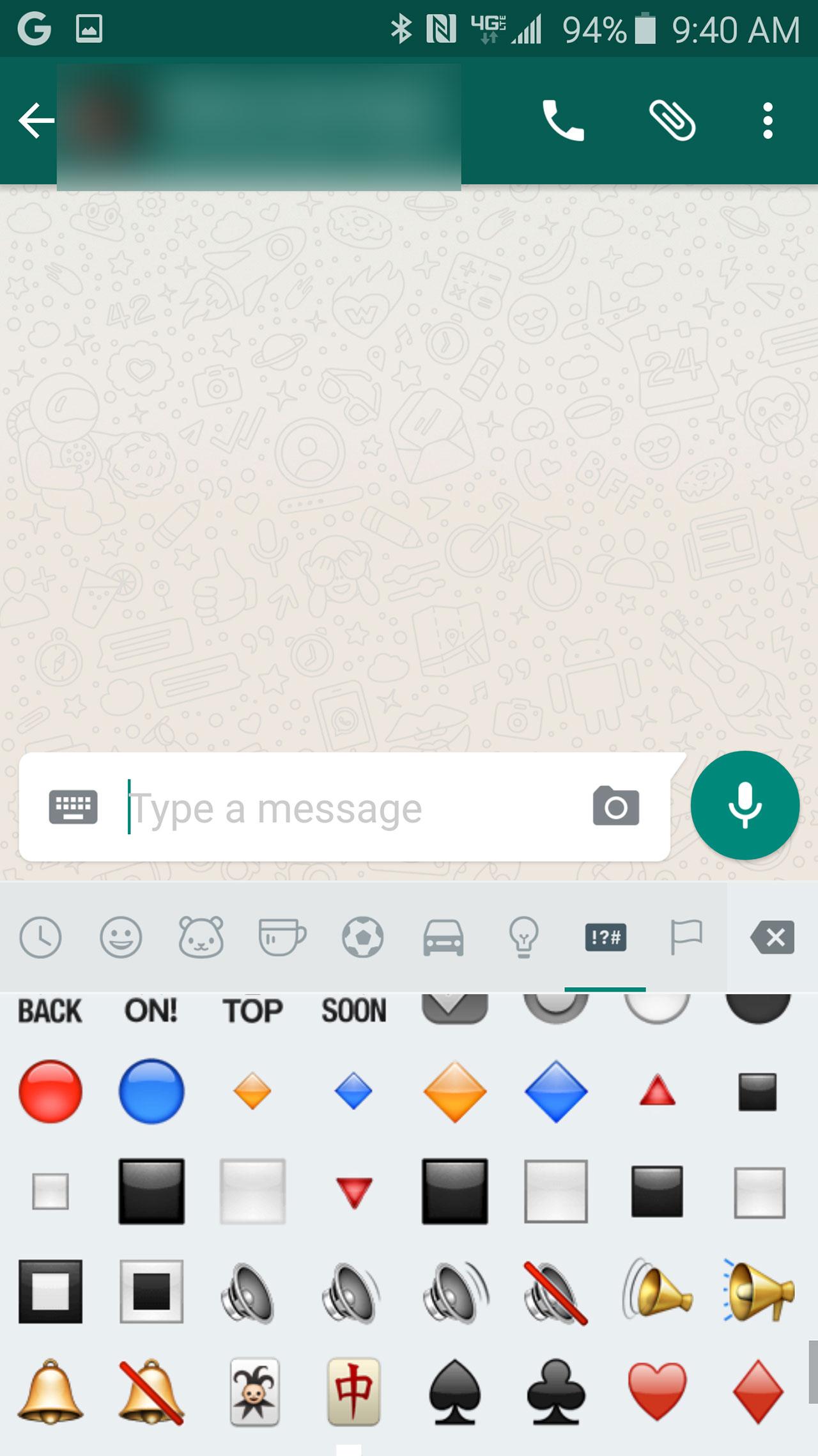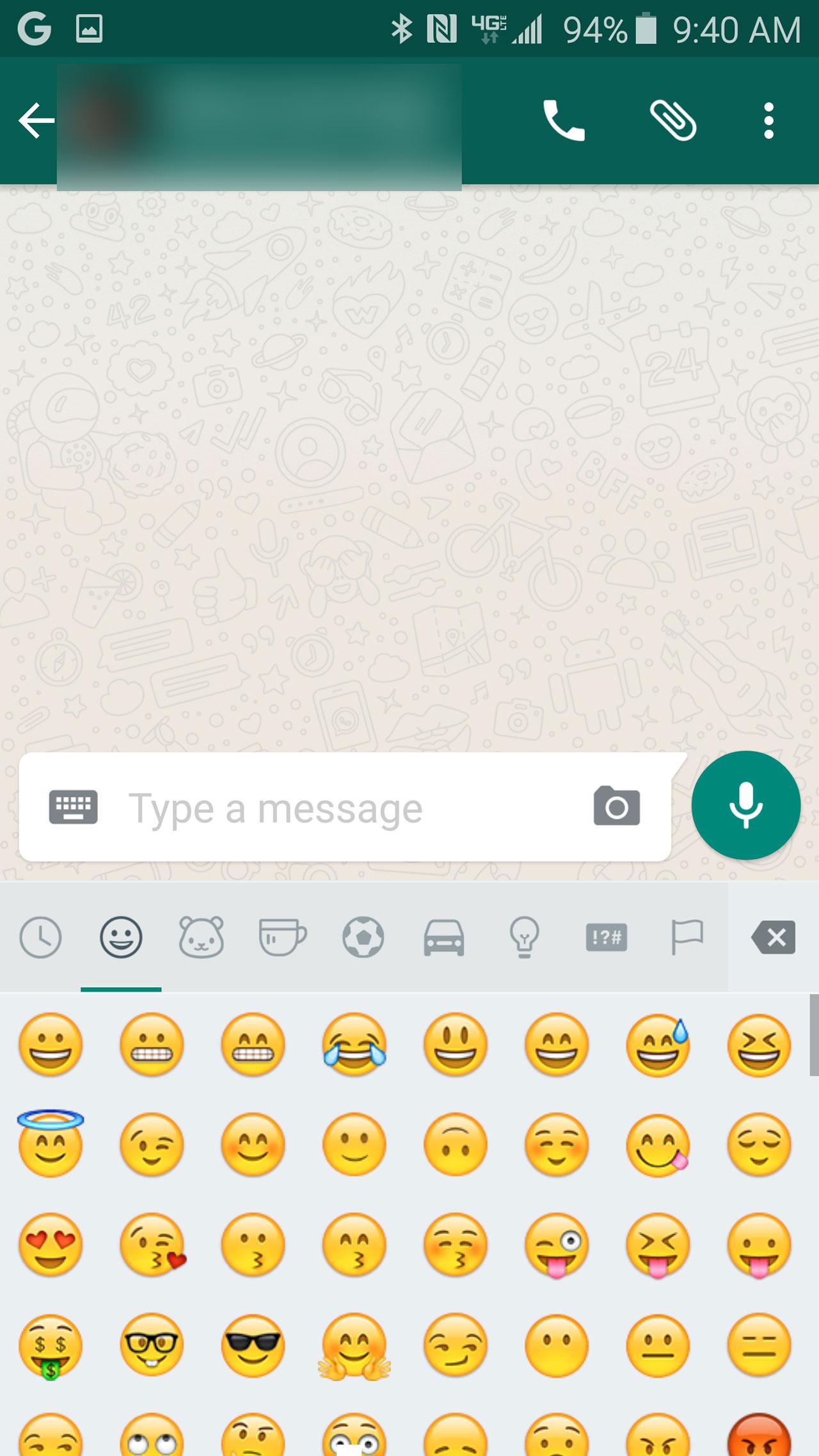 The big difference here for WhatsApp is the fact that they exist right up front and to the left. Inside each WhatsApp message, users are encouraged to use these emoji in a super simple-to-use user interface that includes tabs and a grid of faces, symbols, and hands.