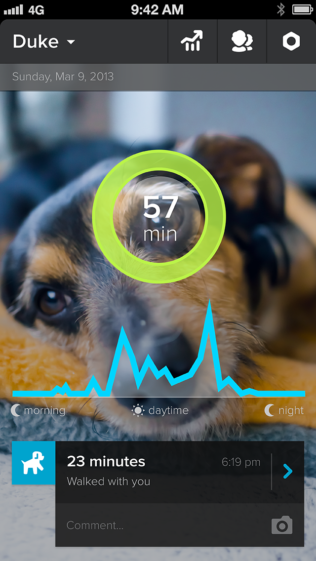 Meanwhile, just as Fitbit and UP have goals for human users, there are targets that can be set for dogs, too. Since sharing pet photos and anecdotes is a common use of social networking, Whistle has integrated that into the cloud app too.