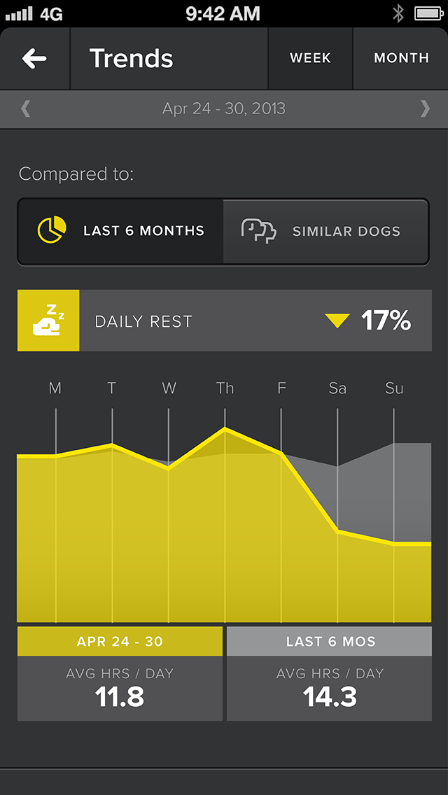 Those routines can then be shared with a vet, to help diagnose any medical issues. Whistle also offers comparative results from similar dogs, meaning you can contrast your pet with the "norm" of other animals.