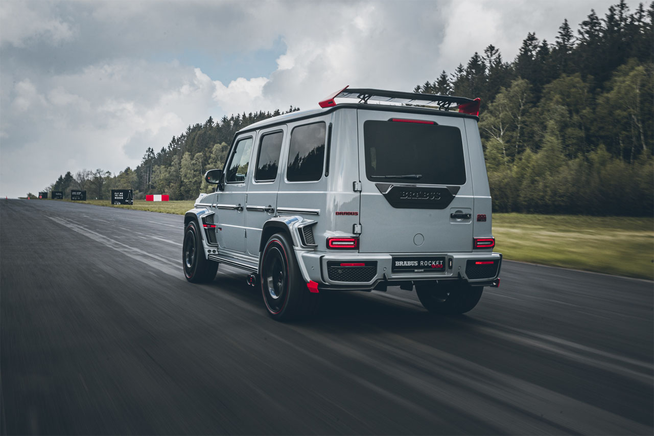 However, Brabus was concerned the transmission might not survive that gargantuan amount of torque, so in the 900 Rocket Edition, torque is electronically limited to 1050 Nm. Gobs of torque no good if it destroys the transmission on launch. Anyone who's ever seen a Mercedes G Wagon in person knows that they are large and about as aerodynamic as a brick.