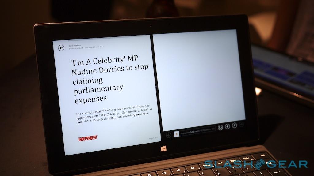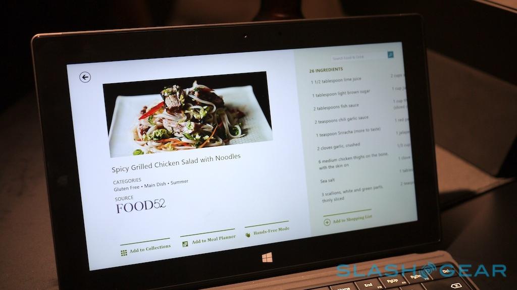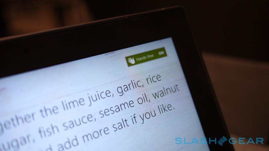 Some of the neatest features are buried in Microsoft's own apps. The Food & Drink app, for instance, which offers a recipes binder, can be switched into hands-free mode: that includes larger fonts and turns the webcam into a motion sensor. Swiping your hand left and right in front of the camera moves through each page of the instructions. It works surprisingly well, meaning you don't get greasy or wet fingers on your touchscreen or keyboard, though you need to be within around 9-12 inches of the webcam.