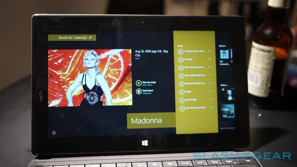 Pulling content normally found in the browser into a single place is something of a theme in Windows 8.1. The new search layout takes individual terms and then crafts what Microsoft describes as an "app-like" UI from them; so, a search for Madonna for instance brought up music from Xbox Music – which could be played directly from the search results – as well as Wikipedia pages – which opened in the local Wikipedia app – and other information, all in a neat, side-scrolling layout.