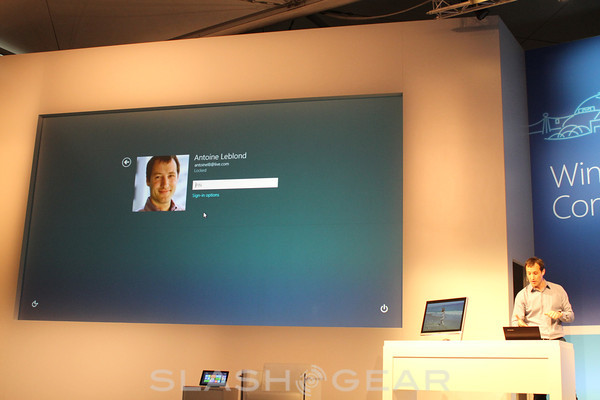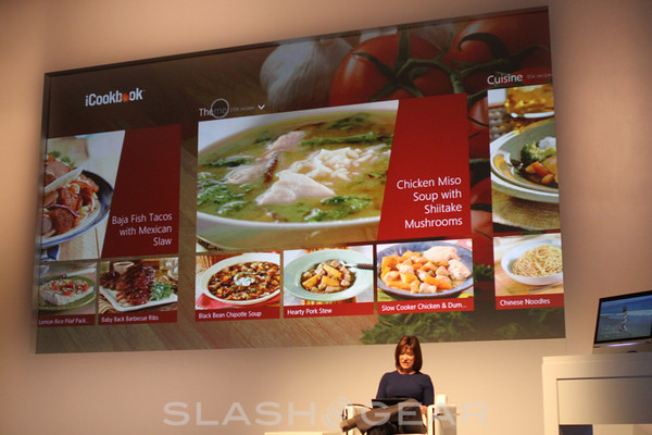 This week we're seeing not only a tablet running apps, but a Lenovo laptop as well. Apps are able to be accessed with a mouse (dragging or using the scroll wheel) or with a tablet (using your finger to roll out.) Metro Style apps work hand in hand with one anther and as Larson-Green mentioned early on, "you don't have to close your apps if you don't want to." We'll find out more about that feature shortly. Then there's the collection of apps that have thus far been made for mobile.