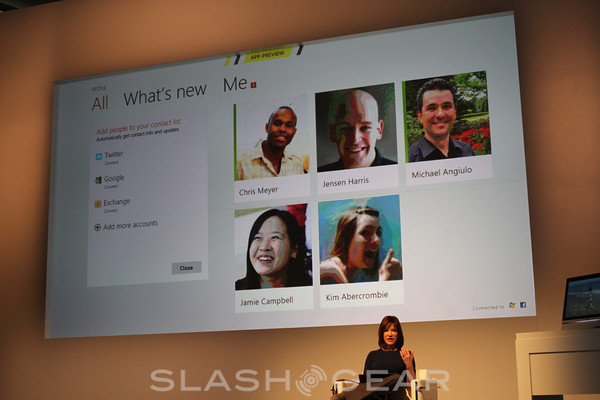 Speaking this week on the collection of apps that will work fabulously in the Windows 8 Consumer Preview, Julie Larson-Green of Windows Program Management noted that it's a completely simple and connected system to use. Tapping on a link in one app will connect you to your preferred web browser – which of course today on stage was Internet Explorer 10. What we're looking at here is a quick look at how Windows 8 will be working with a variety of different platforms when it launches.