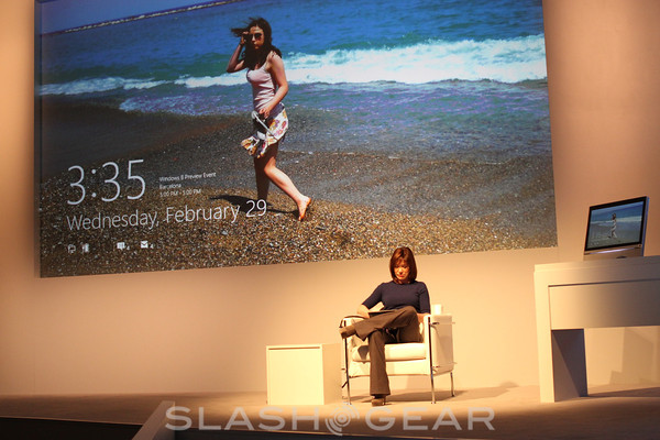 Speaking on stage at the Windows 8 Consumer Preview this week at Mobile World Congress 2012, Julie Larson-Green of Windows Program Management and Antoine Leblond of Windows Web Services outlined how Windows 8 will work with you, the consumer. Larson-Green spoke first of the edges of the tablet, saying that the edges were likely the most important piece of the device itself because holding the device with two hands, one on either side, is the easiest way to work with it and hold it for an extended period.