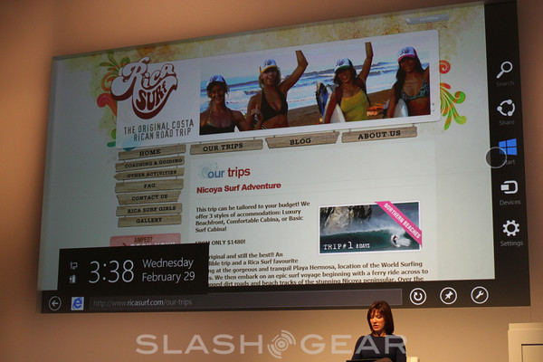 This entire ability is shown to be working fantastically from the edge of the tablet, with the Charms menu and the URL menu to the bottom and to the right of the screen whenever you need them, be they in Internet Explorer 11 or in your Xbox Live app. Continue to follow along with this event with us through our [MWC 2012 portal] and [Windows 8 portal] today and through the week!
