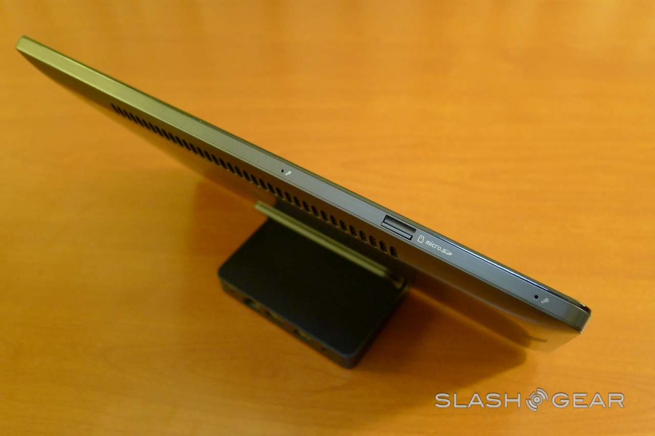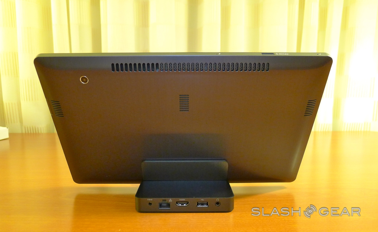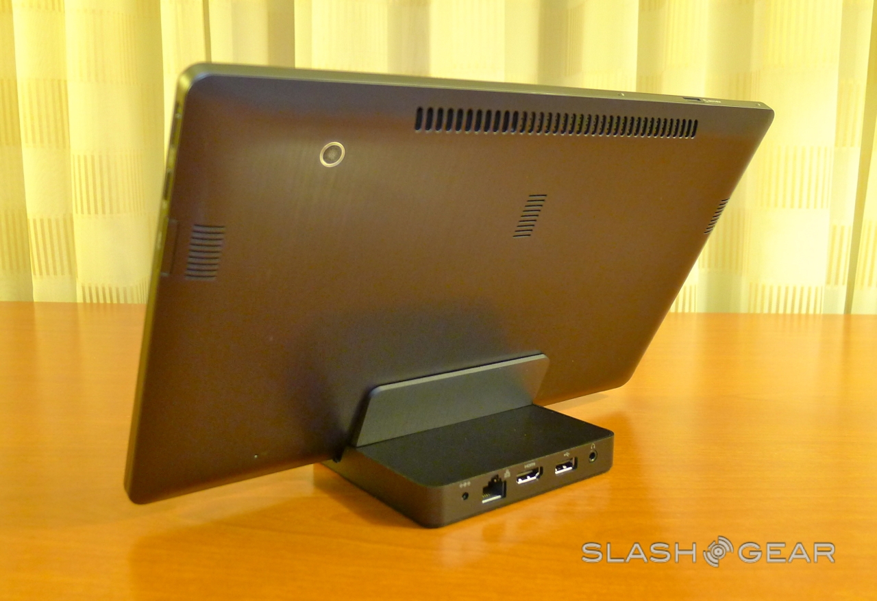 Microsoft is putting more emphasis on the software than the tablet itself, though the eagle-eyed might recognize it from earlier in the month. As well as the slate, there's a docking station and a wireless keyboard; you also get a contentious stylus, since Windows 8 works with both finger-touch and a digital pen for more accurate handwriting recognition and sketching.