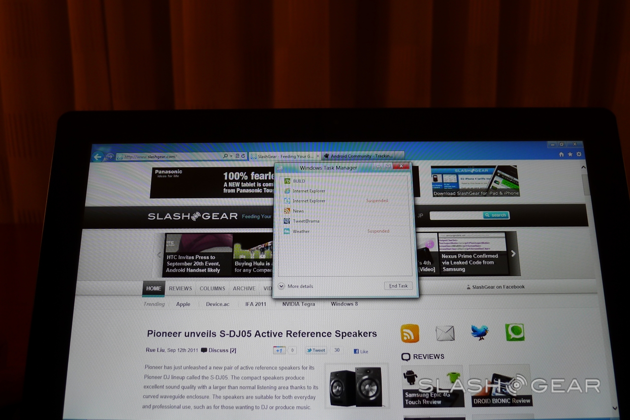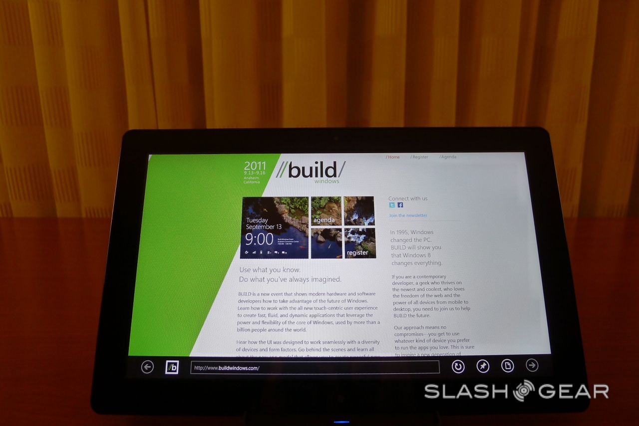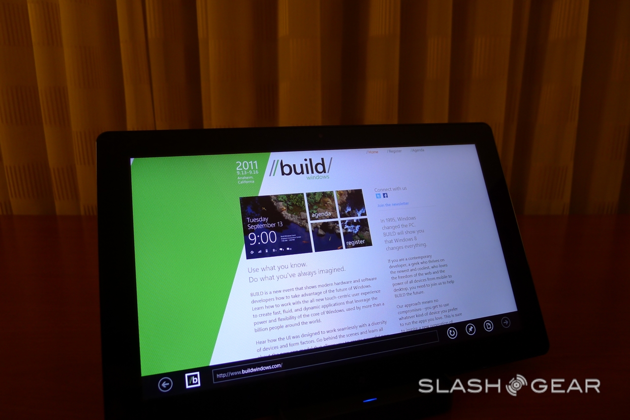 Microsoft BUILD kicks off this week, but we've already been playing with the star of the show: Windows 8 in its tablet form. SlashGear has been testing out a new Windows 8 slate, complete with sub-10s startup, Internet Explorer 10 for touch-centric browsing, and a new UI – previewed earlier in the year - that's strongly reminiscent of Windows Phone. Check out our hands-on preview after the cut.