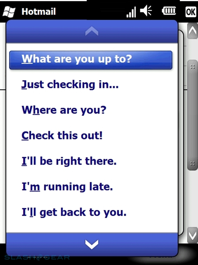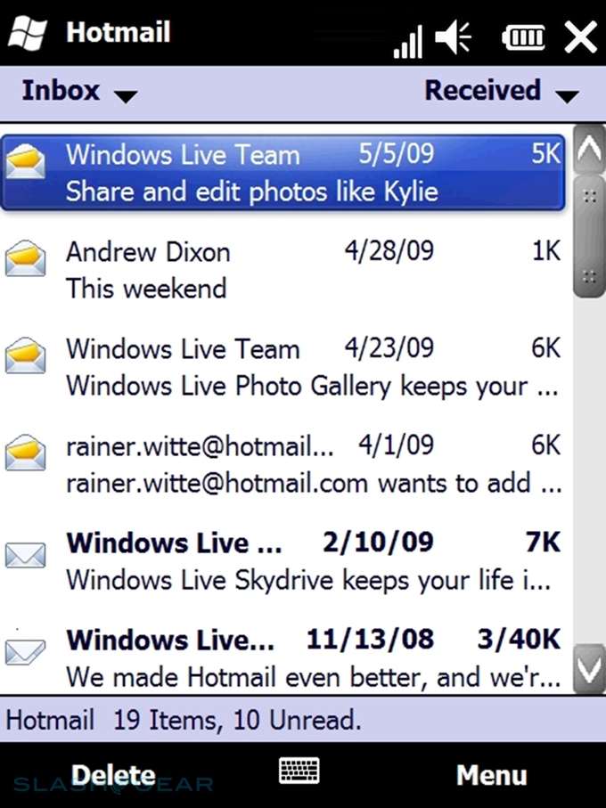 Windows Mobile has always been at its best when used with an Exchange server, and 6.5 looks set to show its true colors when Exchange 2010 debuts. That will bring with it Conversation View, which groups sent and received emails into a themed conversation, the ability to check whether a contact is free or busy from their global address list card, and a "nickname cache" which auto-suggests contacts for the To: field in an email based on previous correspondents, even if they're not a saved contact. It'll also debut speech-to-text transcription of voicemails, which will slot neatly into unified messaging, and preserve reply/forward flags not only on the smartphone but over to Outlook on the desktop.