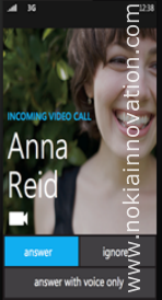 According to the Skype screenshot – shown below – Windows Phone 8 will support answering incoming video calls as either video or voice-only. There'll also apparently be the ability to start a Skype chat directly from individual contact entries.