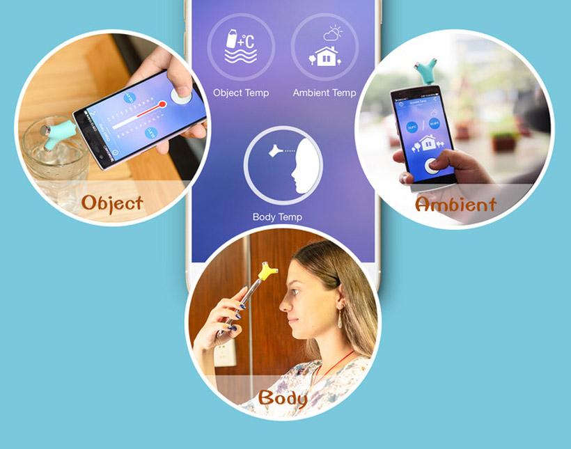 A new product has turned up on Kickstarter called Wishbone that is an interesting device. Wishbone is a contactless thermometer that can be used to take body temperature, room temperature, and the temperature of other objects like drinks. You can finally tell if the formula is the right temp without squirting it on your arm.