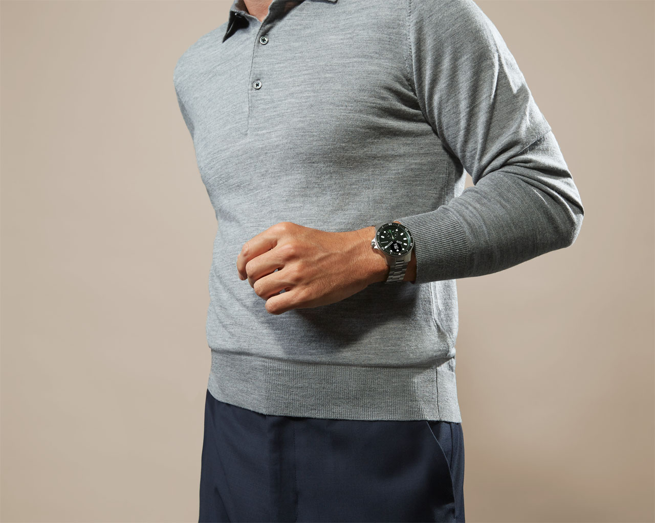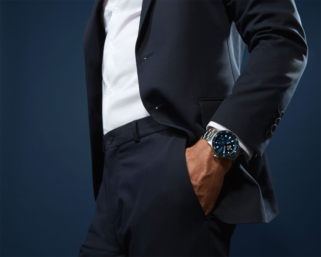 Horizon is currently (PDF) available in the UK for £499.95. The watch's design has an analog face with traditional moving hands and stainless steel rotating bezel typical of diving watches. The stainless steel rotating bezel is laser engraved with markings standard for diving practice. Its hands are hollow Luminova units with indicators and can be used in low light.