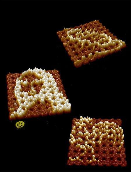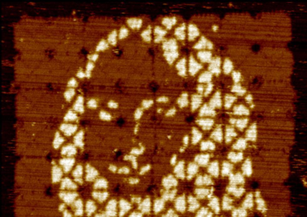 The larger DNA canvas was assembled using smaller square origami tiles as if putting together a puzzle. The molecules can then be selectively attached to the staples to create a raised pattern that can be seen using atomic force microscopy.
