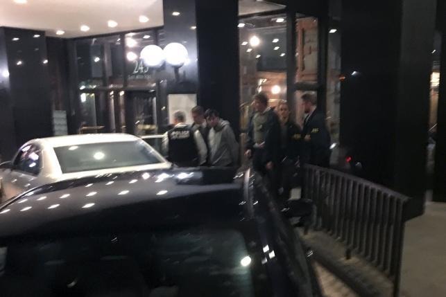 "Reuters witnessed Shkreli's predawn arrest at the Murray Hill Tower Apartments in midtown Manhattan. Law enforcement, including FBI agents, could be seen escorting the hoodie-clad 32-year-old into a car." – Reuters, re: the photo above.