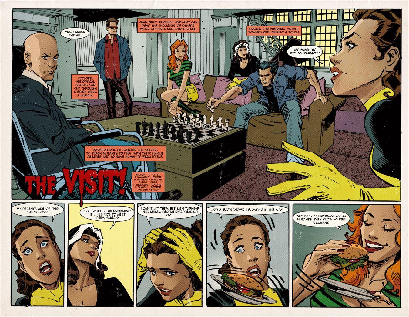 In addition to "Eden," Panosian was asked to do one more short storyline specifically. "An X-Mansion story was requested," said Panosian, "which I completed for the film." This set of pages was used in the film as Wolverine considers his past with the X-Men – as is seen in at least one trailer for Logan.