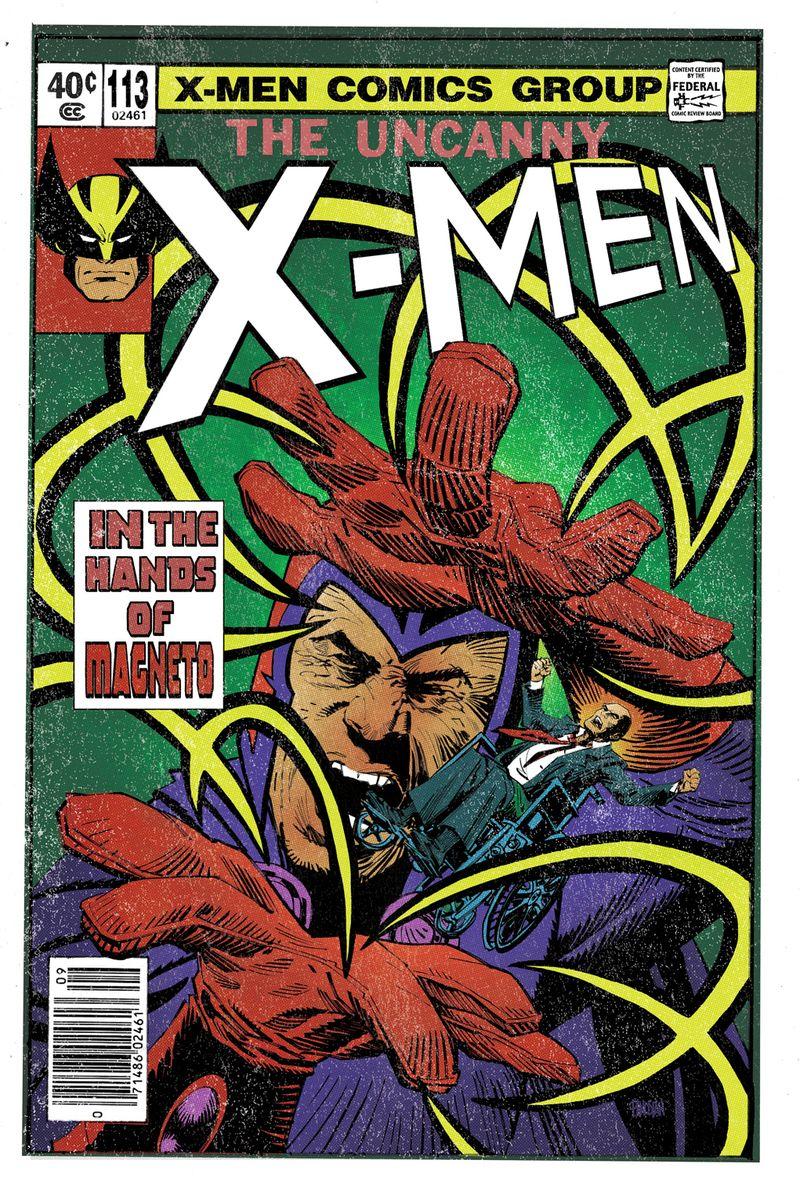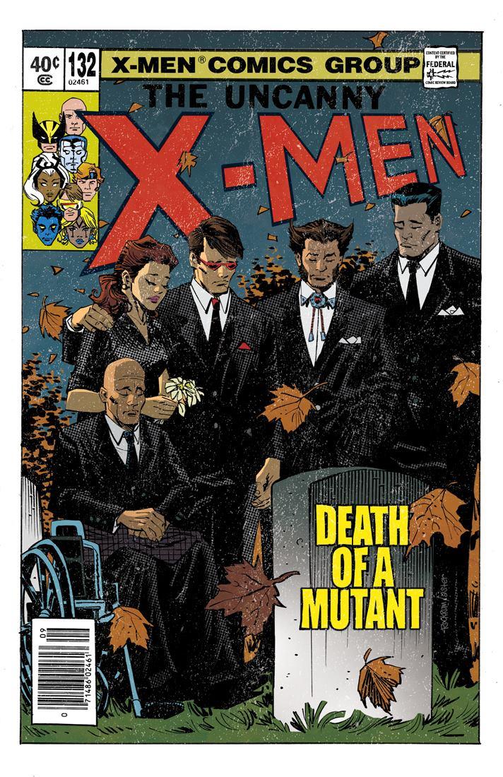 The final version of the comic's cover – used in the film – is a different color entirely. This version you can see Banshee in the corner and the slightly different Comics Code stamp.