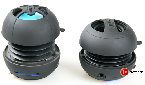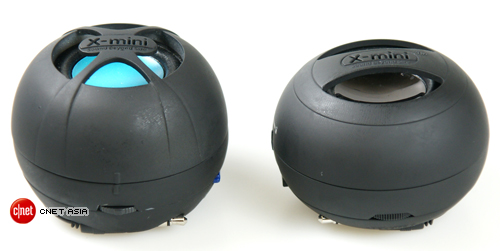 XM-I have introduced a new PMP version of their expanding capsule speaker, the X-mini Happy. Keeping roughly the same design and tweeter of the X-mini II (shown on the right), the Happy adds an SD/SDHC slot for up to 8GB cards and onboard mediaplayer, meaning it can be used as a palm-sized music system.
