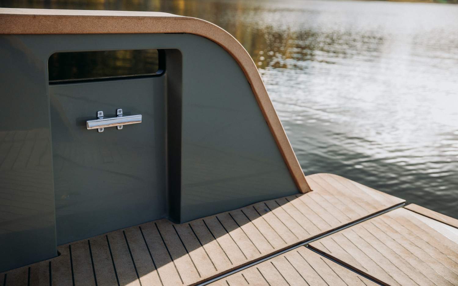 On the sustainability front, in addition to electric drive rather than combustion, the Eelex 8000 uses more environmentally-sound materials too. That means cork to replace teak, and optional Flax fiber instead of fiberglass and carbon fiber. PET and recycled plastic have also been used, and it'll be offered in Moss, Sandy, and Coffee finishes which blend a little more seamlessly into the environment rather than sticking out.