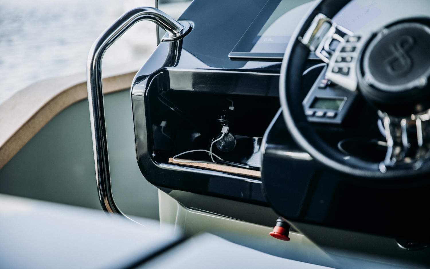 Owners will be able to unlock and power up the boat via their phone or smartwatch, and smart overboard detection means the Eelex 8000 should stop within 10 seconds of someone wearing a connected Garmin smartwatch going overboard more than 10 meters away or under the water. The cockpit has 24-inch Garmin marine-grade touchscreens, with support for the company's ActiveCaptain route management – including remotely planning trips from tablets or phones, and synchronizing it with the X Shore boat – while autopilot will be optional.