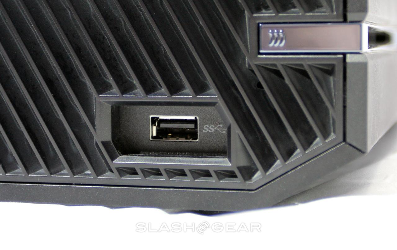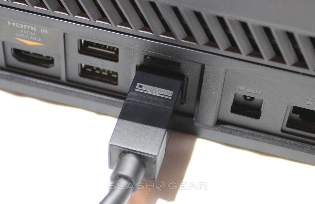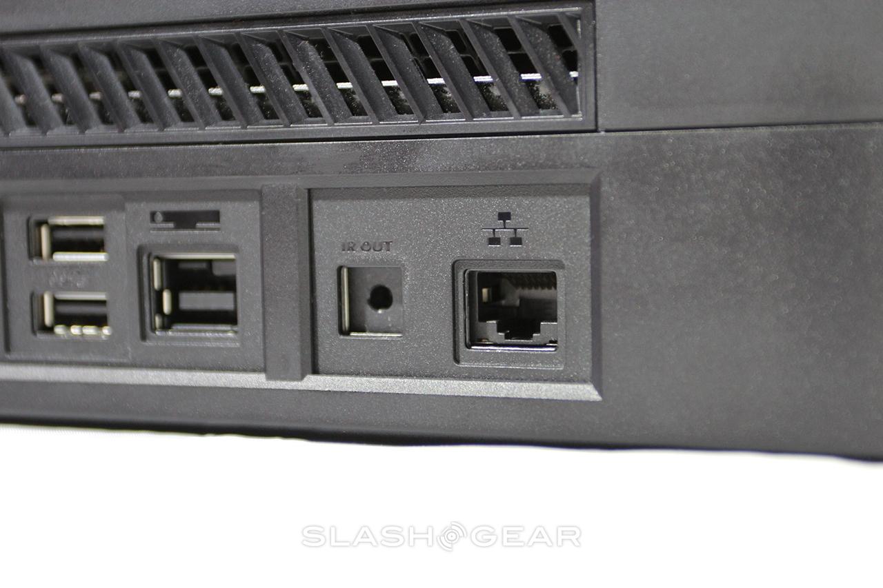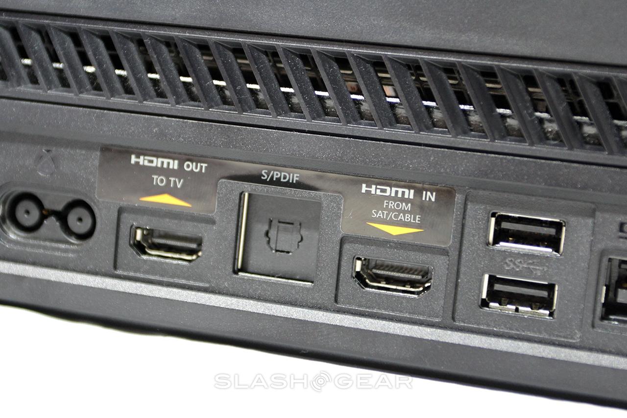 On the back of the Xbox One you've got a power supply port, HDMI-out (with 4K support) and HDMI-in (so you can run other devices or your cable box through, and S/PDIF for optical audio output. You'll be rolling with two USB 3.0 ports for more of the same action the single port near the front on the left provides, as well as a Kinect port – for the included Xbox One Kinect (with included cord, as well).