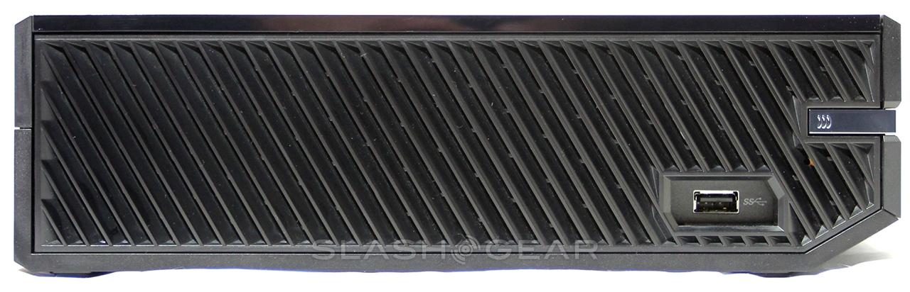 Up top you've got a massive grille through which this device's beastly fan can operate. If you've seen the teardowns of the Xbox One you should be fully aware of the vast majority of the system being taken up by this fan – and you'll be glad to know that it does its job well. The Xbox One can get a bit warm – no so hot that you'll be in danger of burning yourself – but it's basically silent.