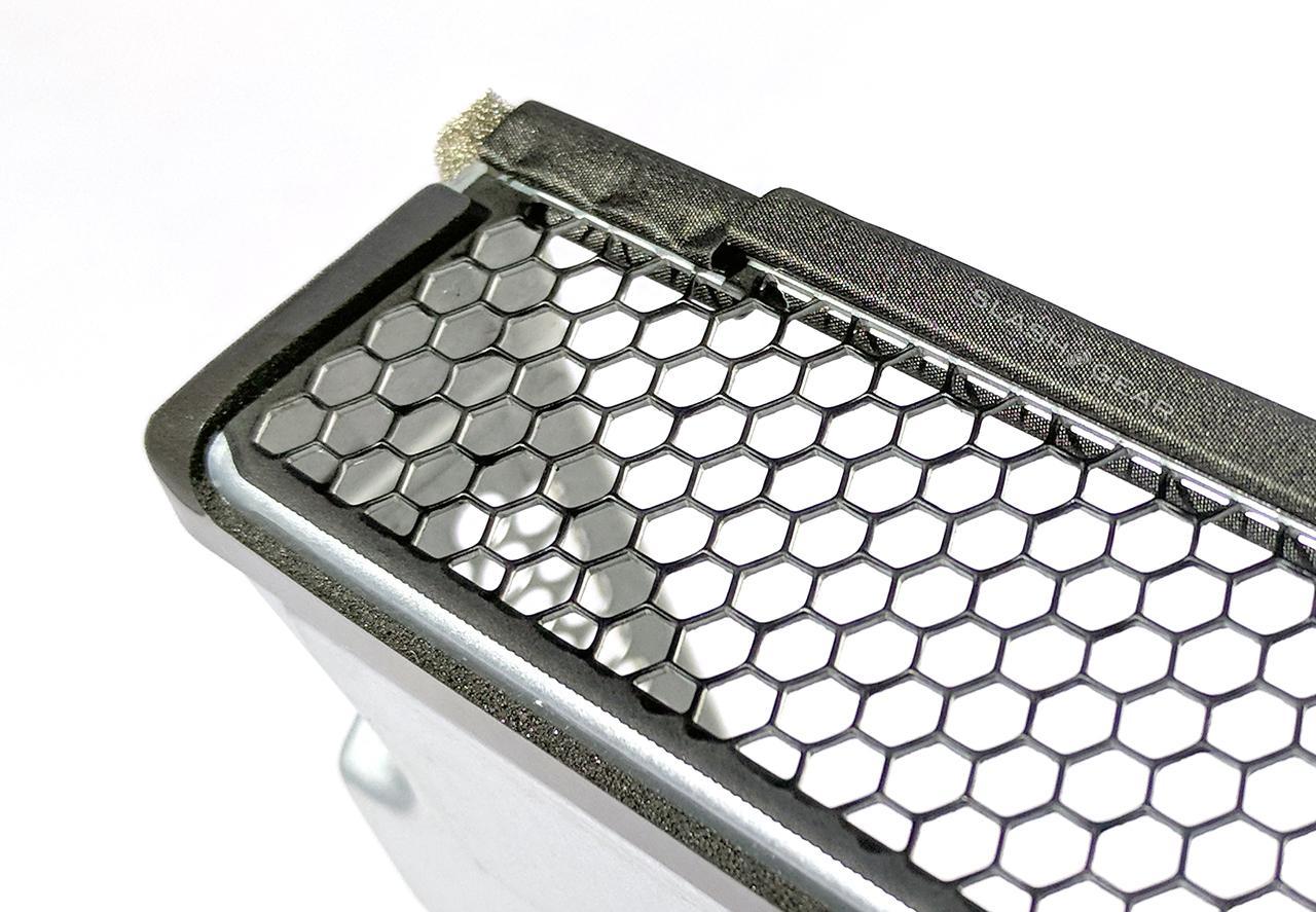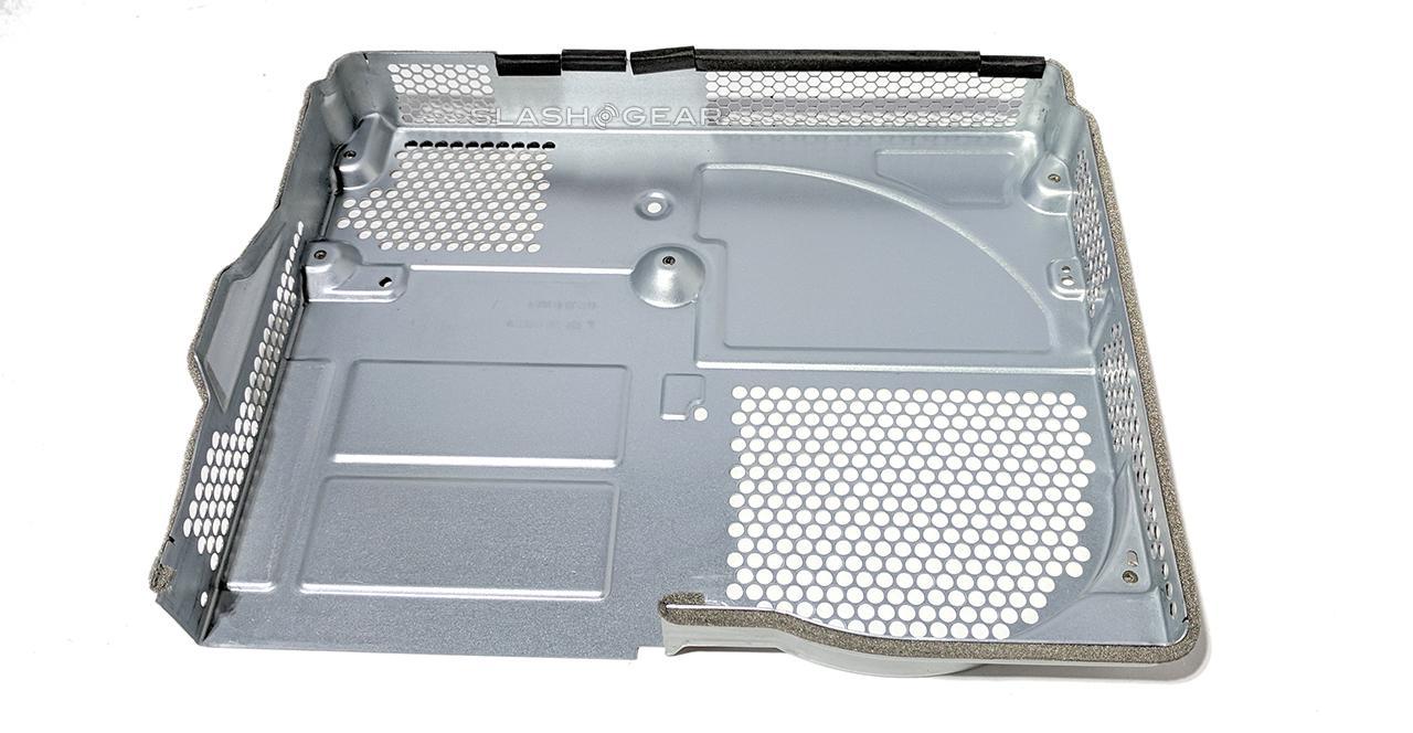 Once the external couple of casing parts are removed, a pair of metal cages contain the internal parts. The cage half that's made to be removed first is quite obviously custom-fitted to this unique set of parts, and has in it an array of honeycomb-shaped grills. The fine mesh work here is, sadly, nearly entirely hidden by the casing around it when the outer casing is attached – but we can appreciate the fine engineering here and now.