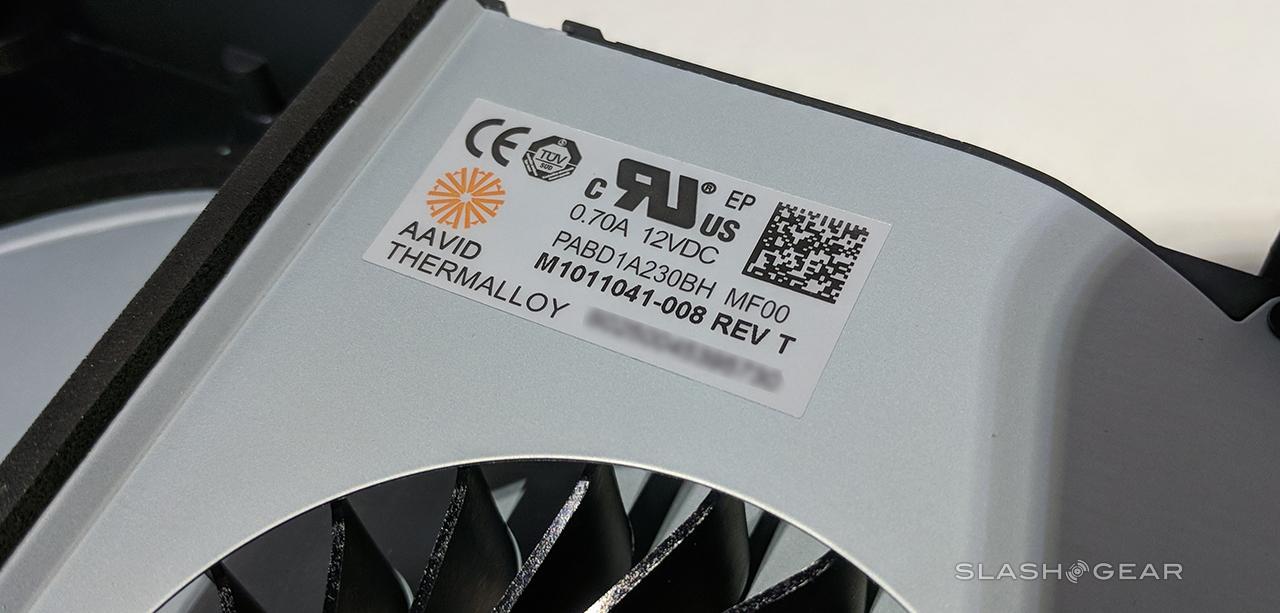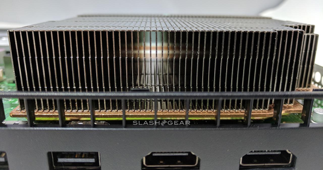 *I should mention that the average user should never need to remove the cooler – the copper hunk you see here. In fact, don't ever remove this piece of hardware, because nothing below it will ever be able to be replaced by you, the end user, anyway. If you have the urge to look at the SoC, stop yourself, it's not worth the risk of wrecking the whole machine. Same goes for the gooey bits down below – just don't do it.