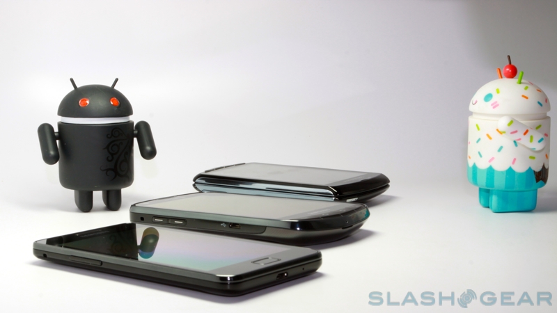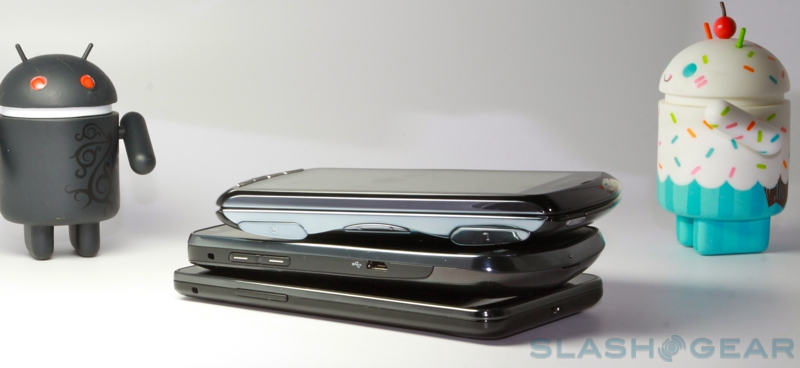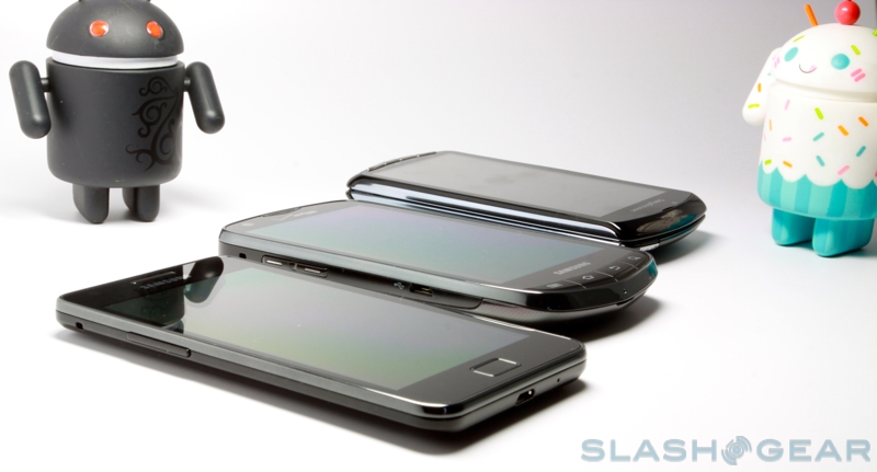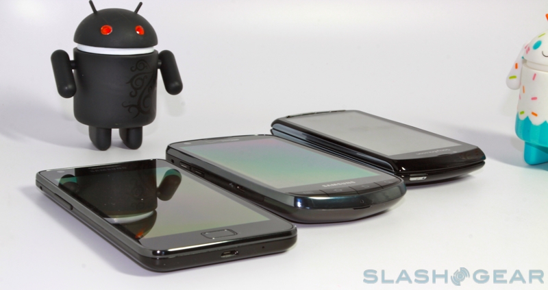 From bottom to top: Samsung Galaxy S II, Droid Charge and XPERIA Play.