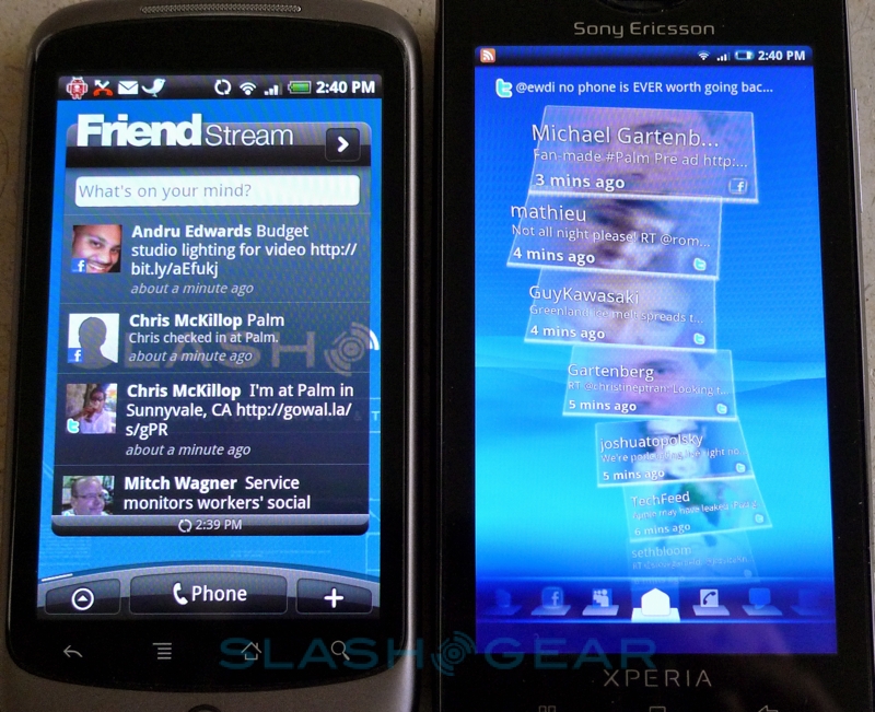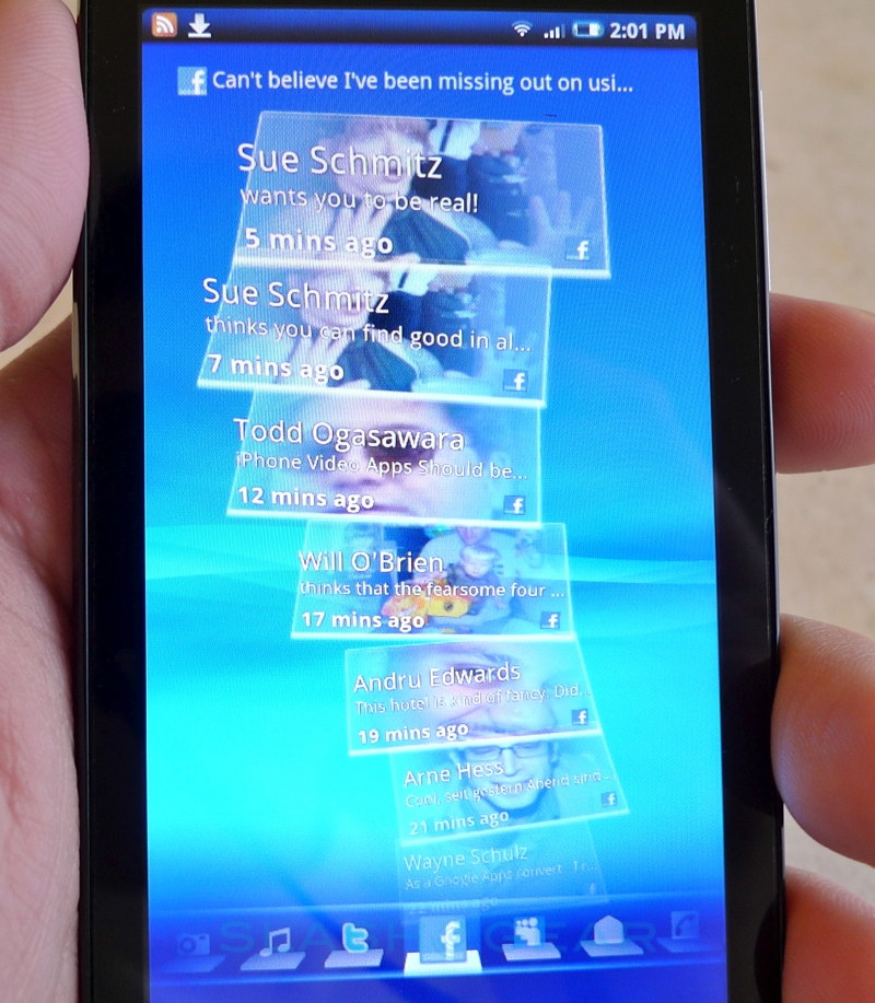 Of the two, while Timescape is perhaps more visually arresting, it's Mediascape that works better in day-to-day use. Like MOTOBLUR, we can't help feeling that Timescape was designed with only moderate social networkers in mind. Subscribe to more than a few people in Twitter or friend more than a handful on Facebook, and your update stream quickly becomes saturated; there's also no way to prioritize, say, seeing updates from certain key contacts. If Timescape learnt from our continued use, eventually bubbling up particular alerts from those individuals it knew we were consistently interested in, there'd be more incentive to stick with it, but there are standalone Twitter apps (and apps for other social networks) which do a better job of handling the update fire hose. It can also be a little laggy at times, though that's generally when pulling in updates; we're guessing that's a side effect of the connection, rather than the Snapdragon chipset, since when everything has been cached the timeline whips up and down smoothly.