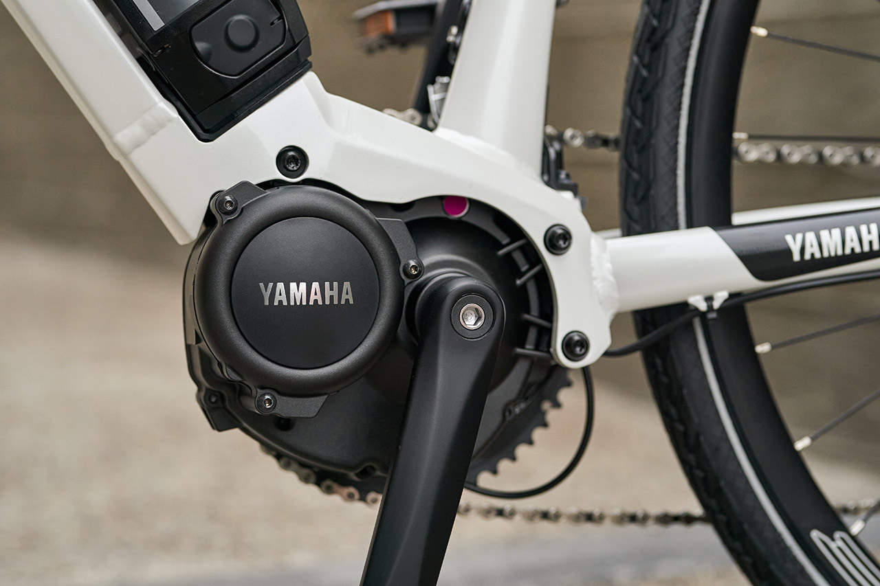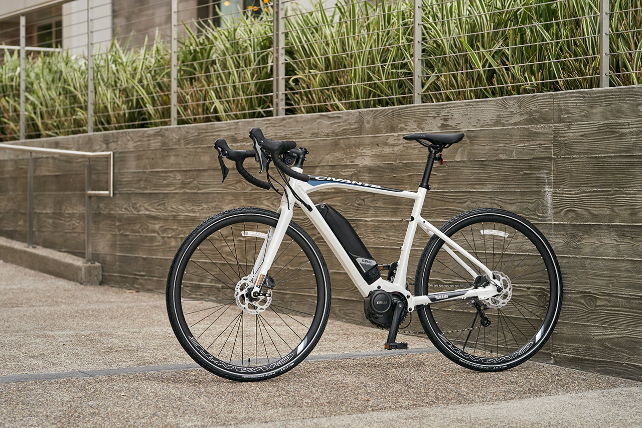 This is not a starter electric bike – it rolls. If you're blasting out at full speed, you'll get pedal assist up to 28 miles per hour. The Yamaha Civante works with what Yamaha describes as ergonomic drop handle bars, mid-depth aerodynamic wheels, and Yamaha's unique aluminum frame and fork.