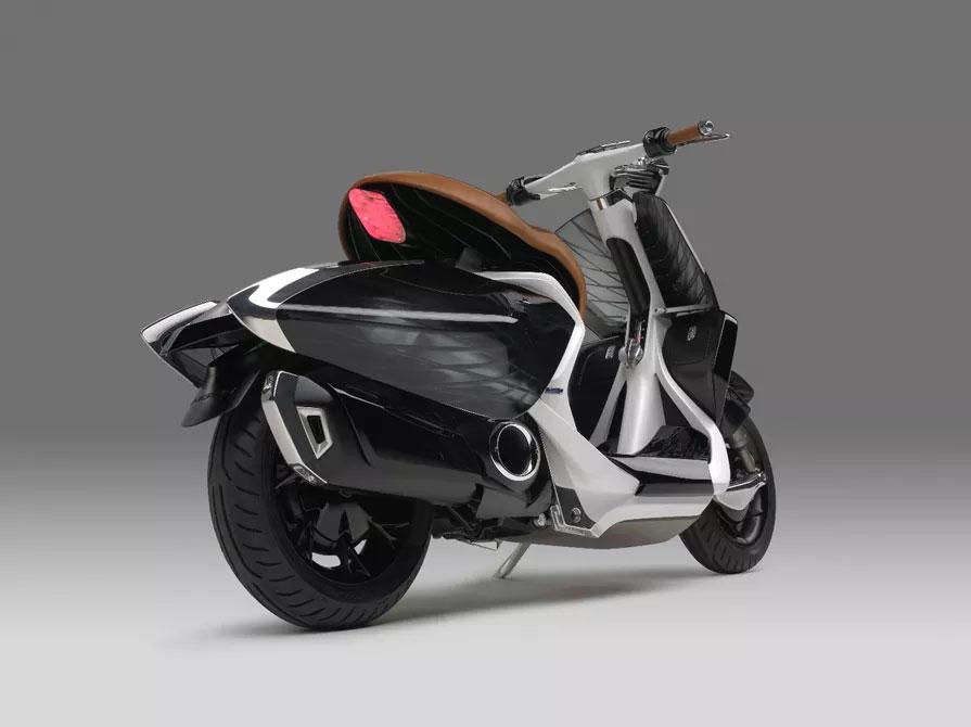 Since the design is a concept, Yamaha is mum on most details of the scooter. It has a combustion engine, but we don't know how large. Smaller engines power most scooters. The scooter does have a monocoque frame similar to the basic structure of a Vespa. Yamaha's concept also has a single shock absorber on the left and a single-sided swing arm.