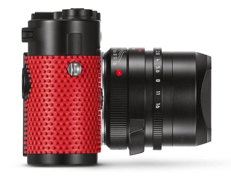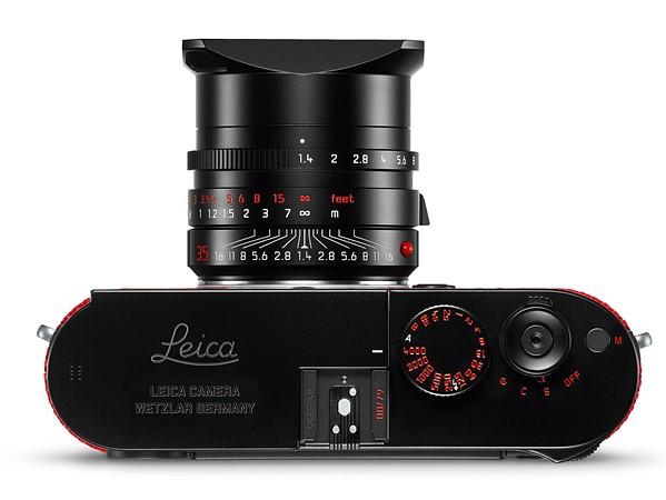 Continuing the red and black color theme, the engraved writing on the top of the camera, on the dials, and on the lens is filled in with red paint. Should you happen to have the pocket to change buy one of these models, the kit includes Leica's Summilux-M 35mm f/1.4 ASPH lens, a Leica SF 40 flash, strap, carrying case, and a set of brushes to clean between the nubs of the textured surface.
