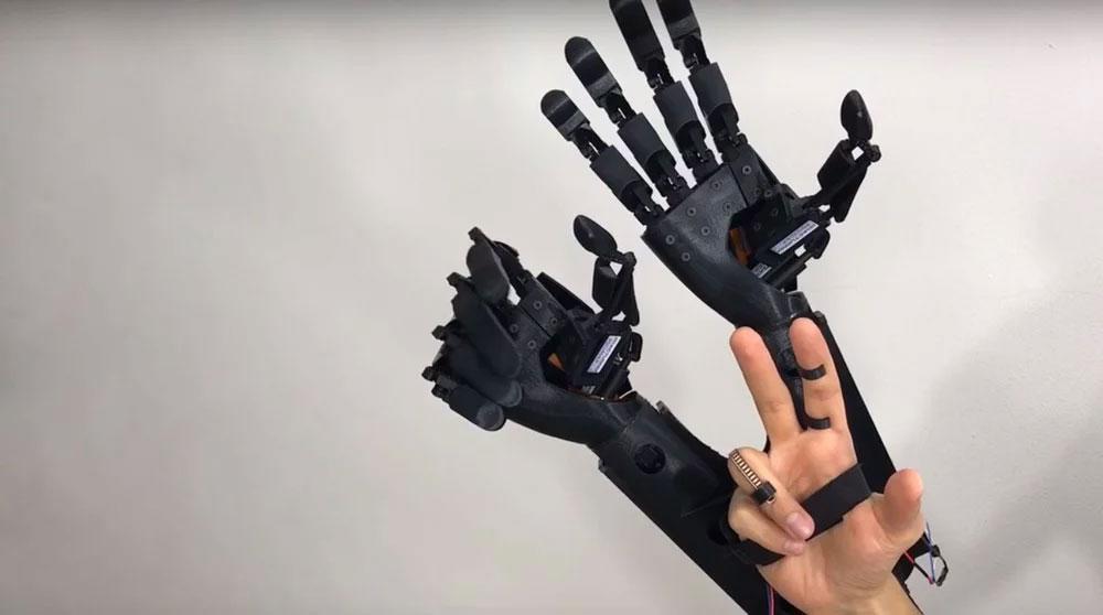 The catch seen in the user video of the robotic hands in action is that the entire hand flexes with the finger movements, not individual digits on the robot hand. The robot hands can't grasp objects, hold objects, or perform much in the way of tasks. The hands are controlled by an Arduino controller so there is an opportunity for expanding the capabilities.