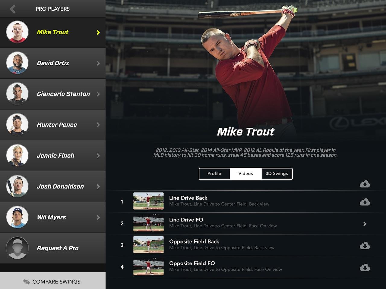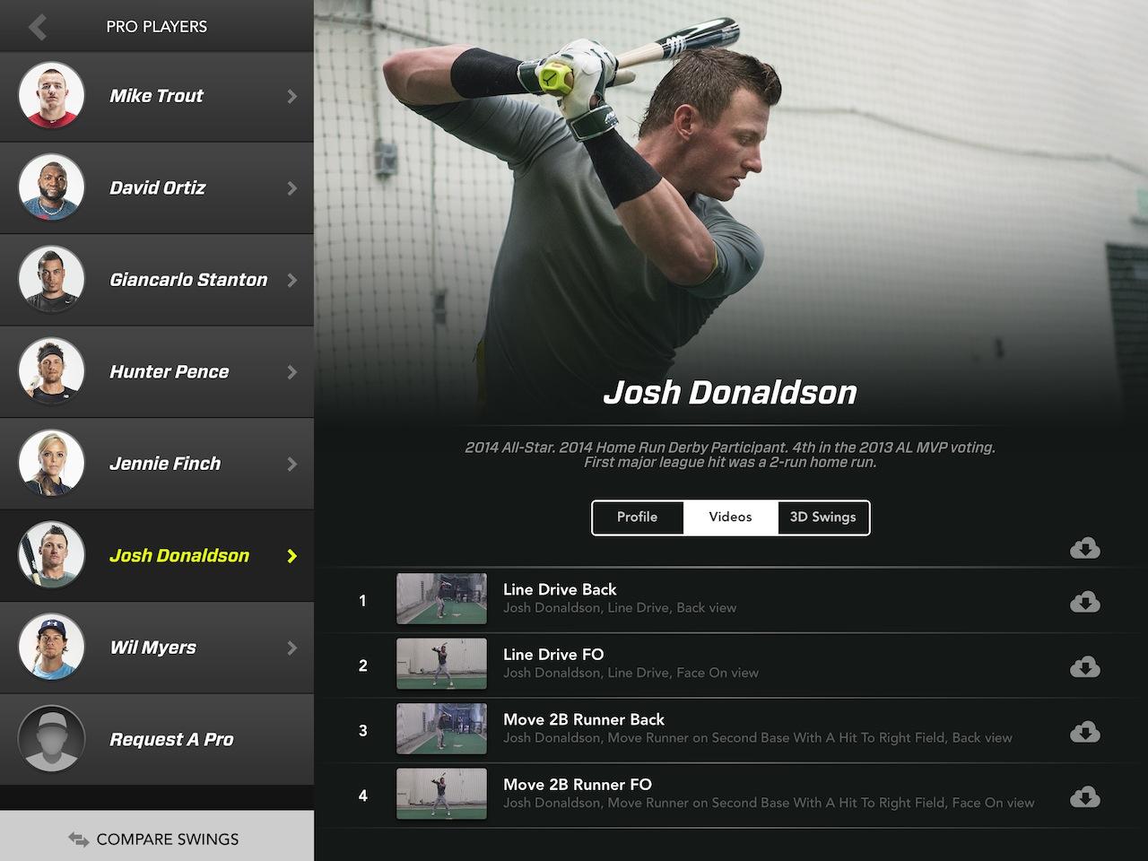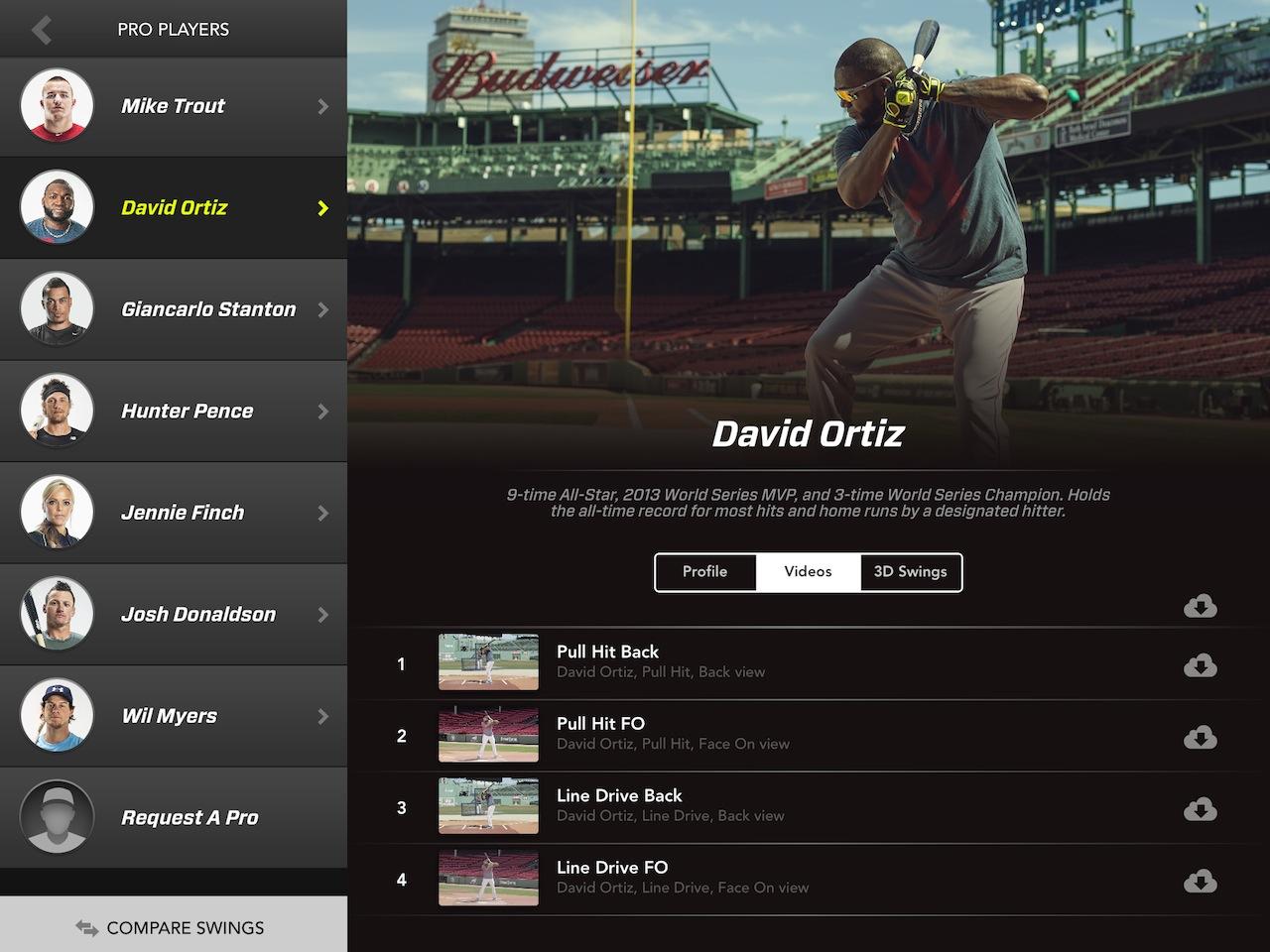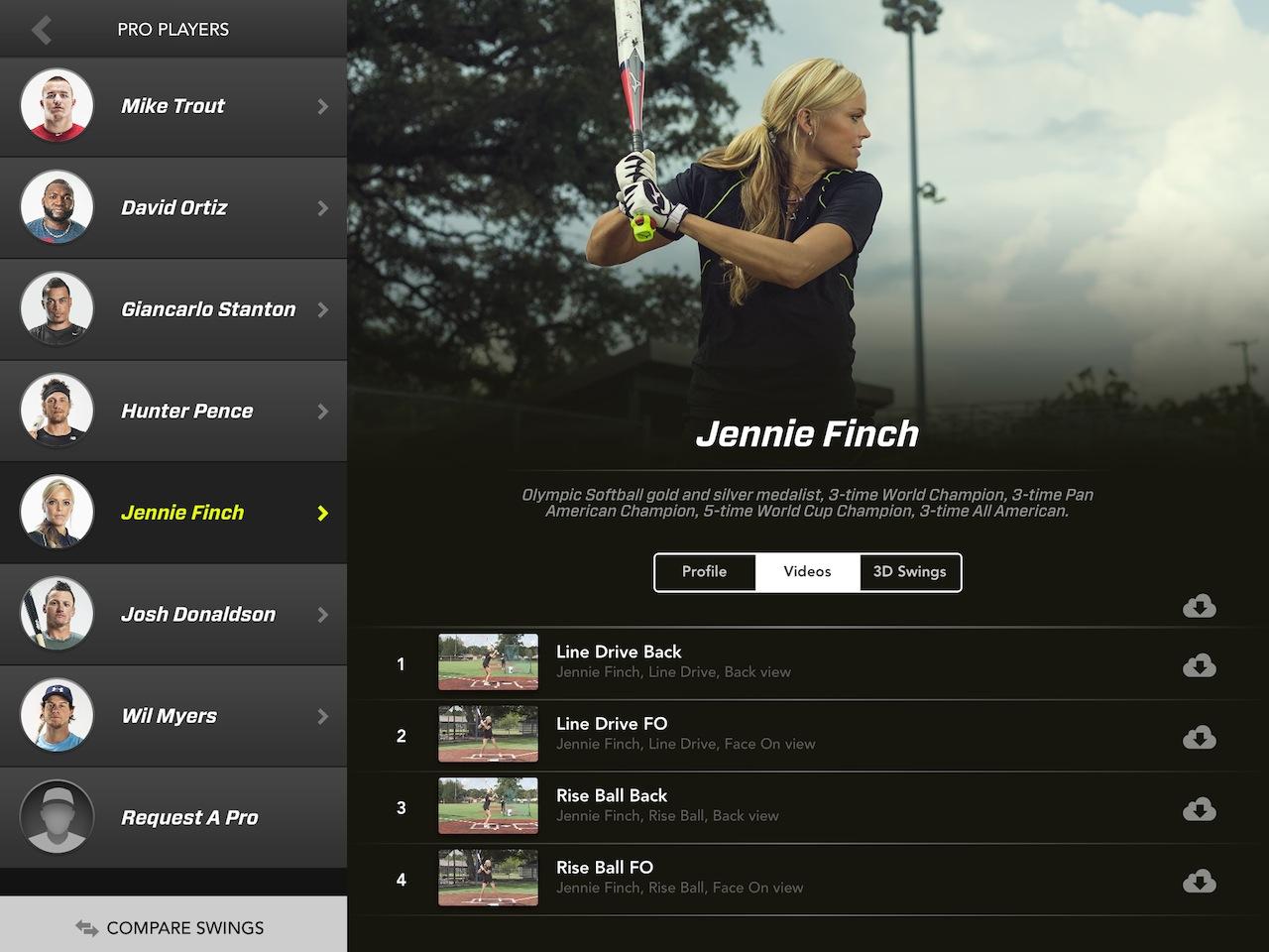 Zepp has already been and captured the same data from athletes like Mike Trout, Hunter Pence, David Ortiz, Keegan Bradley, and Jennie Finch, and so as well as reviewing your own performance you can compare it to each of theirs. There are 3D swing models along with HD videos, and you can watch them side-by-side with your own to see how they shape up.