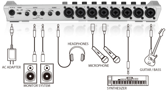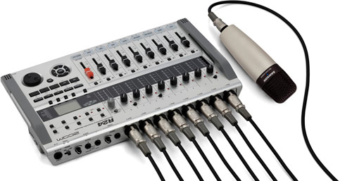 The R24 records on SD memory cards and supports cards up to 32GB for over 100 track hours of recording. The flexibility of SD recording makes the R24 lighter and more reliable. Over 100 built-in studio and mastering effects can be used to enhance recordings.