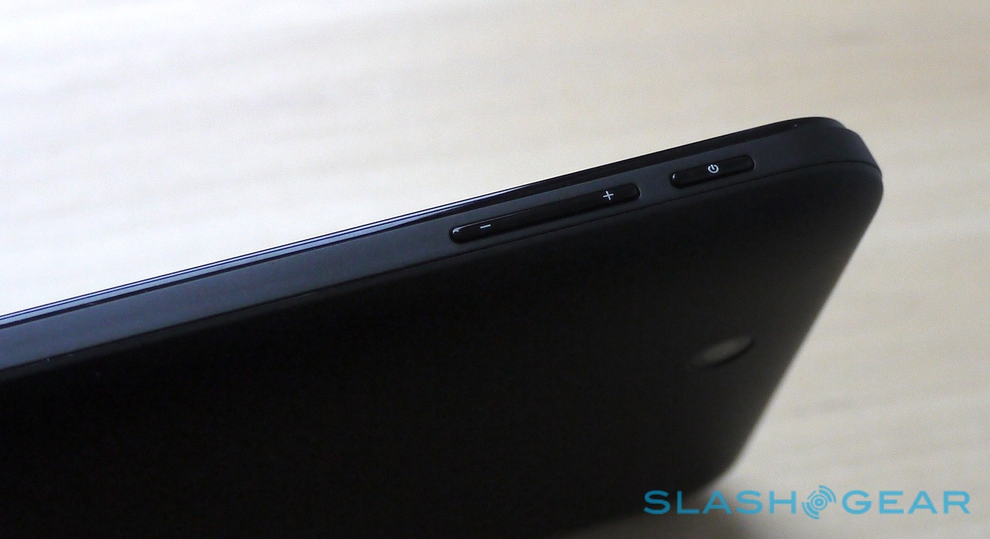 Build and design are solid and simple rather than anything more dramatic. The entire plastic back panel – matte-finished, though not soft-touch plastic – pulls off to reveal a 3,400 mAh battery, SIM card slot and microSD slot to augment the 4GB of internal storage. It's all creak-free and sturdy, but the aesthetic isn't going to win any awards. Physical controls are limited to power/lock and volume on the upper right edge, along with three touch-sensitive buttons under the display, plus you get stereo speakers, a 3.5mm headphone jack and a microUSB port for charging and syncing. At 202 x 122 x 12.6 mm and 402g it's fairly compact though slightly heavier than what we've seen Samsung produce lately.