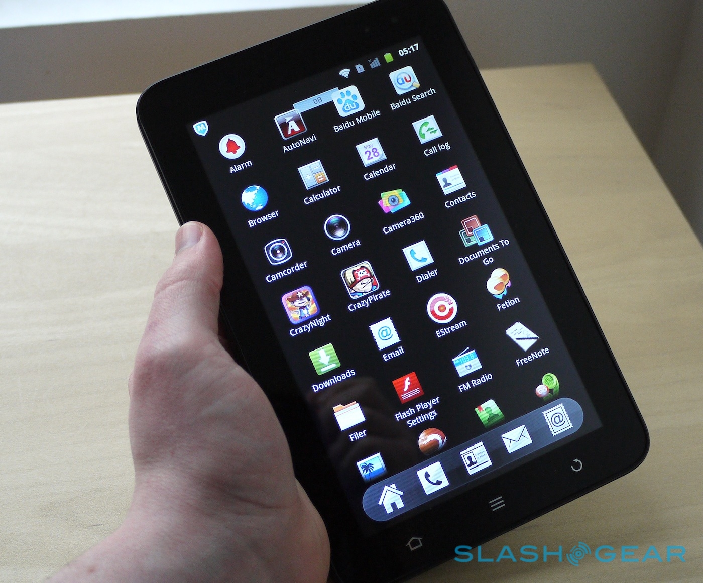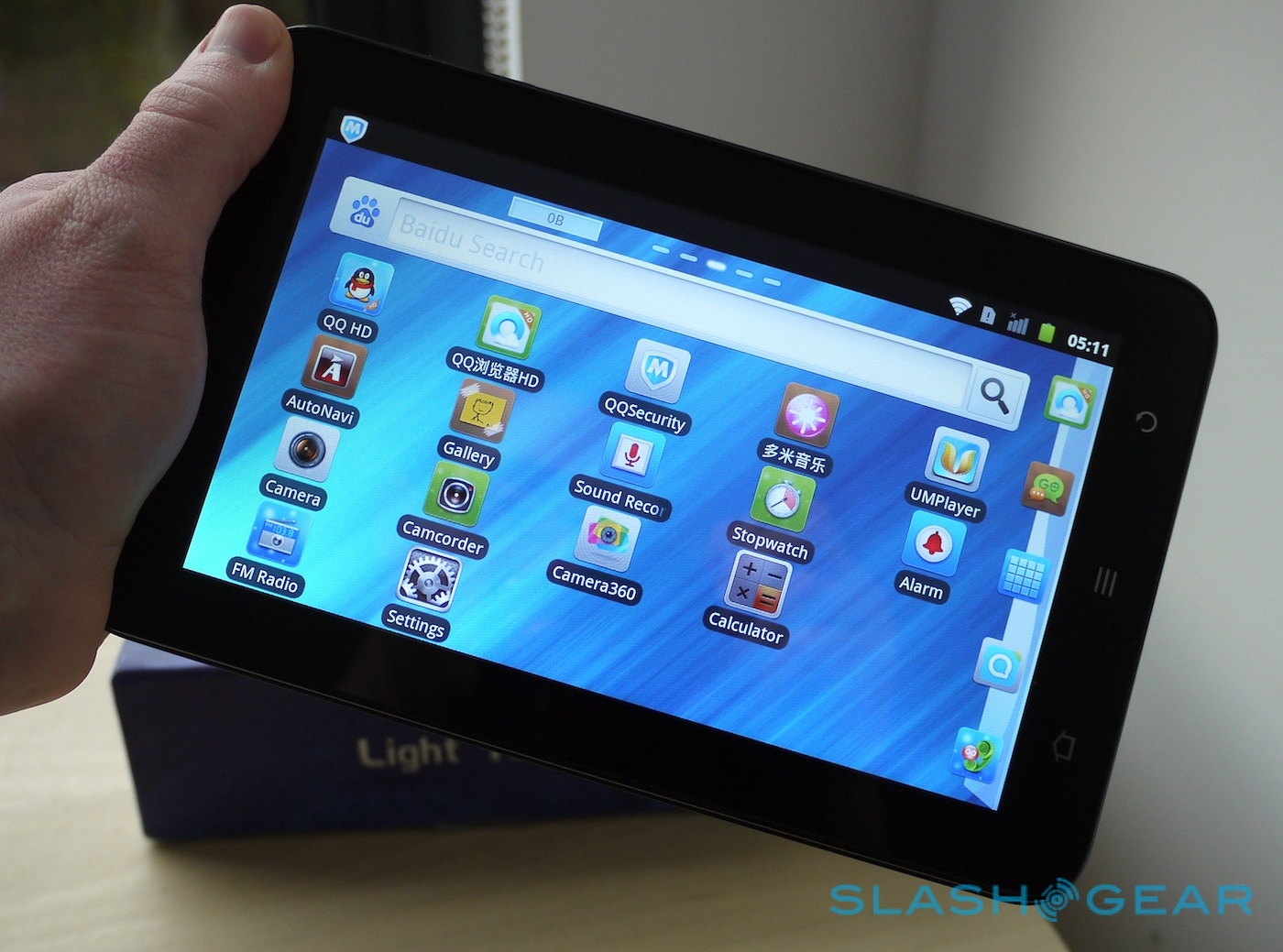 The big drawback is, unsurprisingly, the OS. ZTE has opted for Android 2.3 Gingerbread, rather than say tablet-specific Honeycomb or the latest Ice Cream Sandwich. We're back to where the original Galaxy Tab left us, but ZTE hasn't put the same effort into reskinning the core apps as Samsung did. Instead, you get a choice of two launcher skins, both showing – on our pre-launch demo model at least – plenty of Taiwanese and defaults like Baidu search.